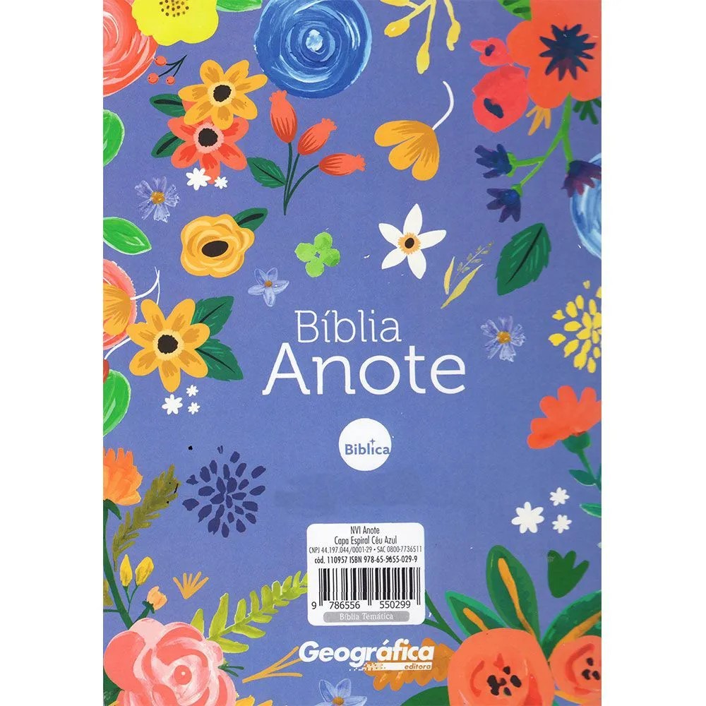 A Bíblia Anote é a escolha ideal para quem busca uma leitura enriquecedora e de qualidade. Publicada pela renomada editora Geográfica, sua alta gramatura e capas modernas foram pensadas especialmente para você, nosso público principal. Não perca a chance de conferir as novas opções de capa da Anote, com certeza uma delas irá conquistar seu coração e tornar sua experiência ainda mais especial. Adquira já a sua Bíblia Anote e comece a explorar suas ricas mensagens e ensinamentos! Bíblia Sagrada, com a linguagem na versão NVI (Nova Versão Internacional). Dentre as versões bíblia ela se torna uma das mais modernas e prezervando a clareza do texto, permanecendo fiel aos Escritos originais. Incluindo panorama bíblico e mapas. A Bíblia anote com espaço para anotações, é desenvolvido seguindo o gosto de pessoas que tem um hábito e amam desenhar, escrever tudo que o que Deus tem falado com você, popularmente procurada como "journaling".