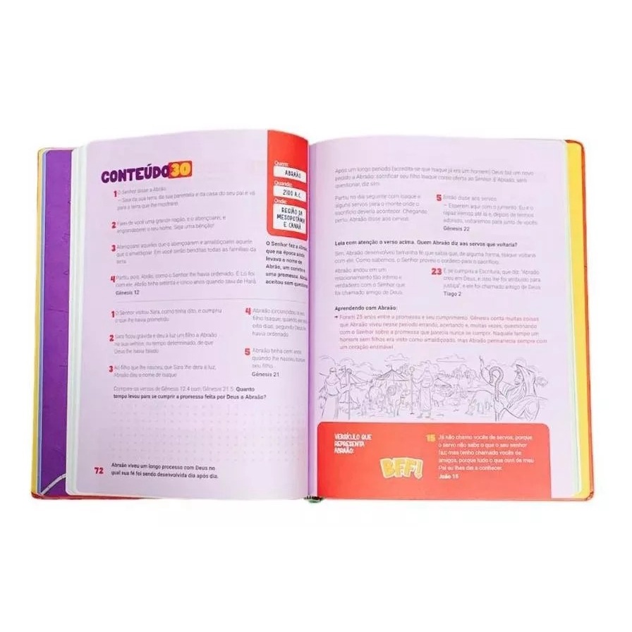 A Bíblia comentada Kids é o novo projeto do JesusCopy que nós desenvolvemos com o objetivo de dar ferramenta para os pais criarem uma paixão em seus filhos pela Bíblia. Ela contém 50 capítulos com 50 conteúdos e a cada conteúdo trazemos um versículo, uma reflexão, uma oração e uma atividade lúdica para que você possa fazer junto com seu filho. Queremos te ajudar e te dar ferramentas para guiar seus filhos desde cedo a amarem as escrituras e a criarem uma paixão por elas, e nada melhor pra isso do que algo que proporcionasse tempo de qualidade entre pais e filhos. Com ilustrações coloridas e atividades interativas, as crianças vão se divertir enquanto aprendem sobre as escrituras. A criança terá autonomia para realizar sozinha as atividades da Bíblia Comentada a partir de 6 anos, porém em qualquer faixa etária a criança poderá ser auxiliada por um adulto. 27x22cm 123 Páginas
