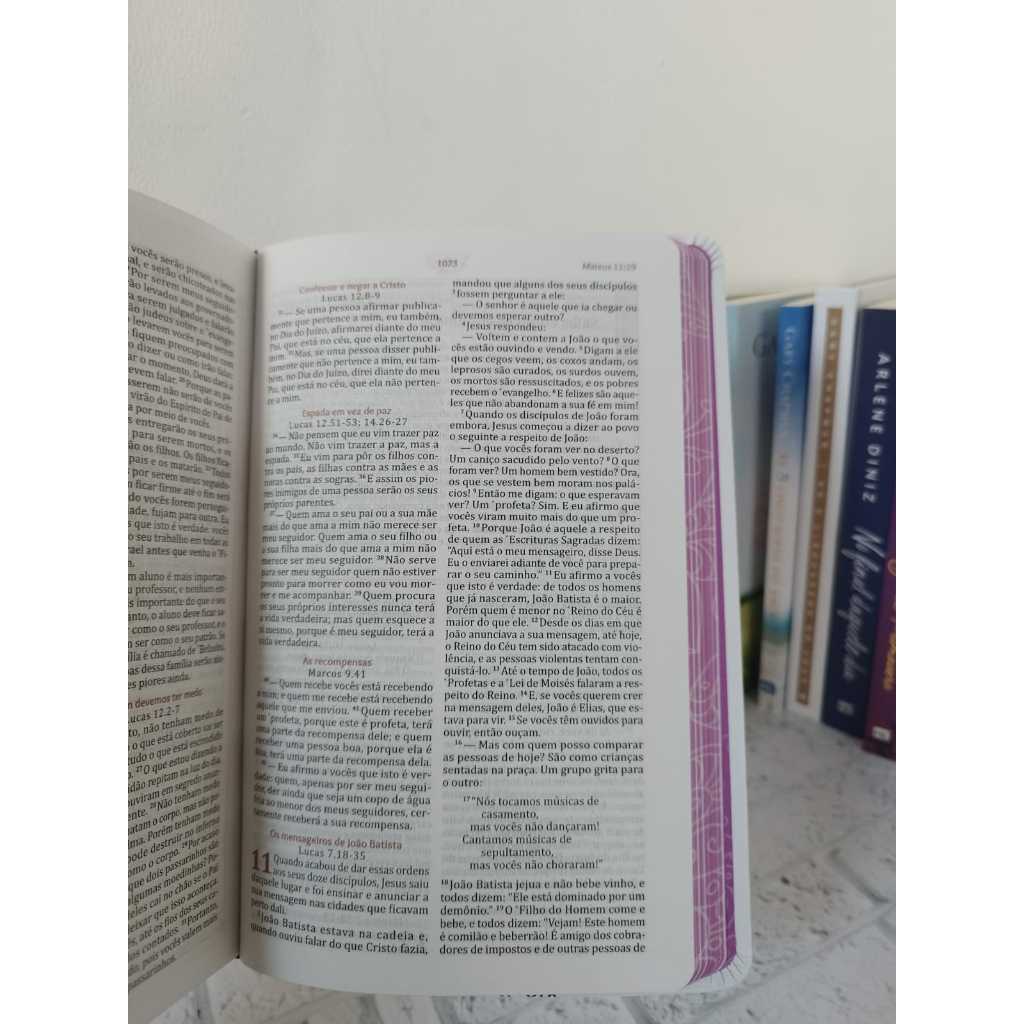 A BÍBLIA DA GAROTA DE DEUS. Toda garota tem um montão de sonhos, planos e experiências, mas tudo fica muito mais maneiro quando ela deixa Deus e a Palavra fazerem parte de seu mundo. É por isso que a Bíblia da garota cristã tem a sua cara, com notas, comentários, devocionais, dicas e outros recursos para ajudar você a ser assim ? uma garota de bem com a vida e segundo o coração do Pai. Recursos da Bíblia da garota cristã: Textos de Hayley DiMarco, uma autora bestseller americana que manda muito bem quando o assunto é o universo das garotas. Introdução aos livros da Bíblia, incluindo fatos de leitura rápida sobre quem escreveu cada livro, para que público e os temas principais. Perfil de diversas Garotas de Deus que se destacaram na Bíblia, como Maria, Ester e muitas outras. Orações e devocionais para ajudar você a mergulhar fundo na Palavra de Deus todos os dias. Pergunte a si mesma para meditar em assuntos tipo família, educação, amizade, sexualidade, pecado, fé e muitos outros. Ajuda rápida, um índice com versículos bem legais sobre temas e situações que você enfrenta todos os dias. A Bíblia da garota cristã foi feita do seu jeito para você se tornar a garota que Deus a criou para ser. 1504 Páginas 22x14,5