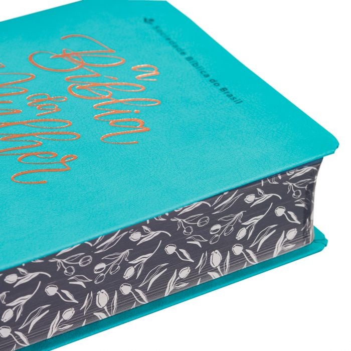 Bíblia da Mulher Compacta | NAA | Capa Luxo Turquesa Tulipa