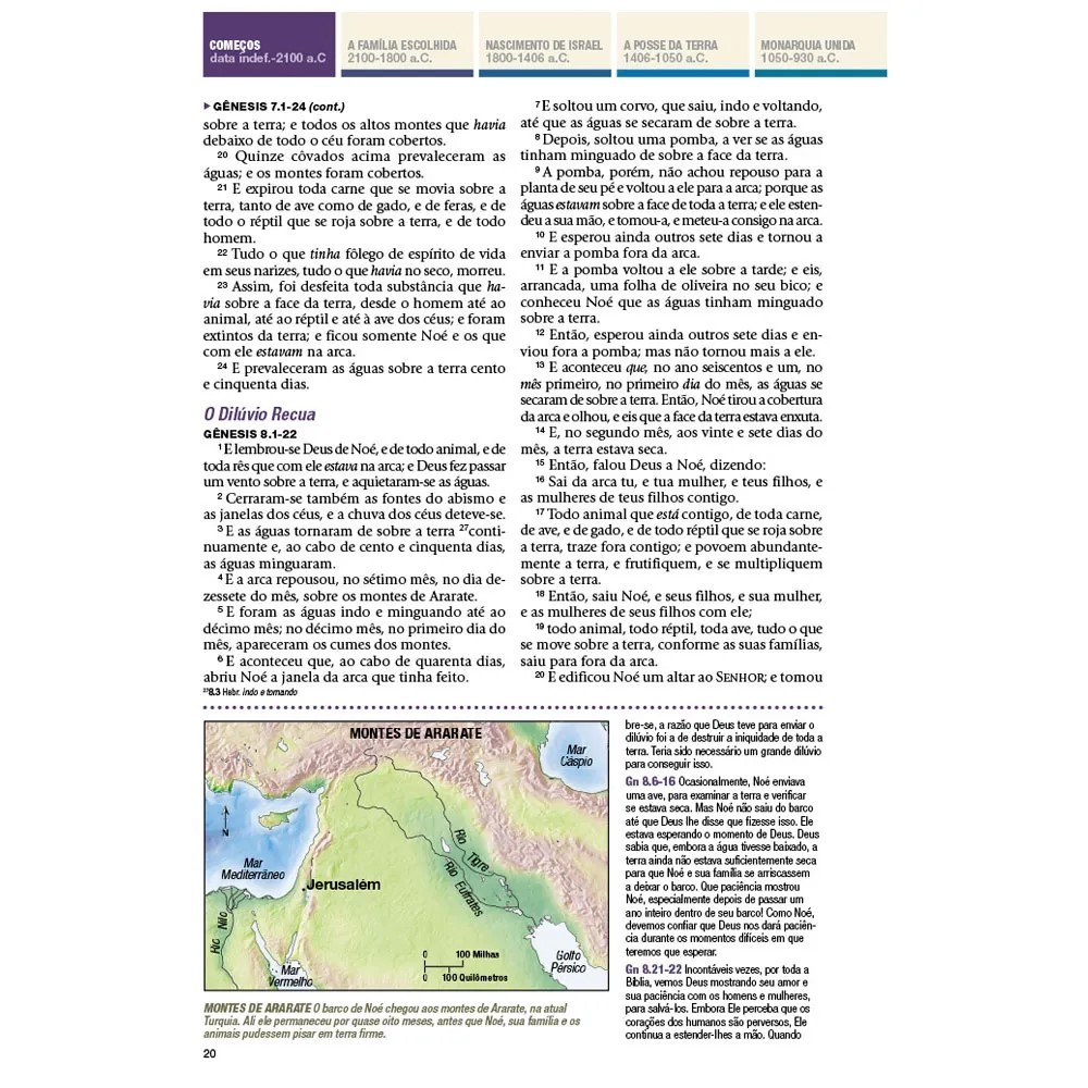 A Bíblia é a história da interação de Deus com sua criação. É uma história que ocorre ao longo do tempo, em muitos lugares, e através de muitos eventos. Ele inclui as vidas e as lições aprendidas por muitas pessoas de muitas culturas. Muitas vezes é fácil perder de vista a forma como a história de Deus se encaixa quando a nossa principal forma de olhar para a Bíblia é um pouco aqui e um pouco ali. A Bíblia de Estudo Aplicação Pessoal Cronológica, toda colorida, combina os recursos da Bíblia de Estudo Aplicação Pessoal com um formato cronológico e vários novos recursos. A Bíblia é organizada em 10 seções cronológicas que o auxiliarão a ver como as várias partes da Bíblia se encaixam. Novas introduções de seção e cronogramas definem o cenário para as passagens em cada seção. Novas notas e fotografias arqueológicas ajudam a trazer a história de Deus para a sua vida de uma forma totalmente nova. E, é claro, os recursos de Aplicação Pessoal que o ajudarão a utilizar tudo o que você aprender. Experimente toda a extensão da Palavra de Deus lendo na ordem em que aconteceu. Aproxime-se do mundo da Bíblia com cativantes “insights” arqueológicos. Aprenda como usar a palavra de Deus em sua vida com as notas da Bíblia de Aplicação Pessoal mas confiável de hoje. Repleta de mapas coloridos, fotos e ilustrações que dão vida ao texto bíblico como nunca antes. Experimente os eventos dos Evangelhos em ordem cronológica e compreenda a vida de Jesus de uma forma totalmente nova, 30.000 notas de rodapé divididas em 10 eras bíblicas.