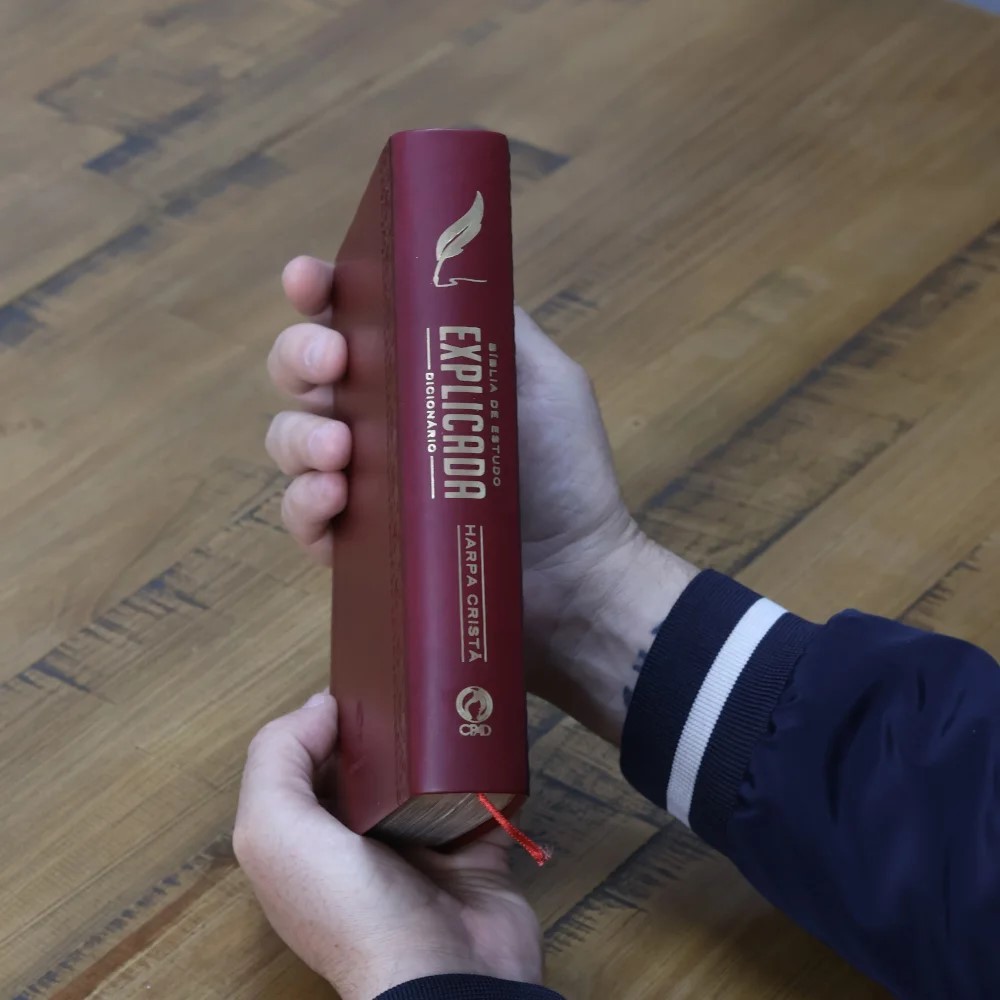 Bíblia de Estudo Explicada - ARC - Luxo Harpa Cristã Vinho