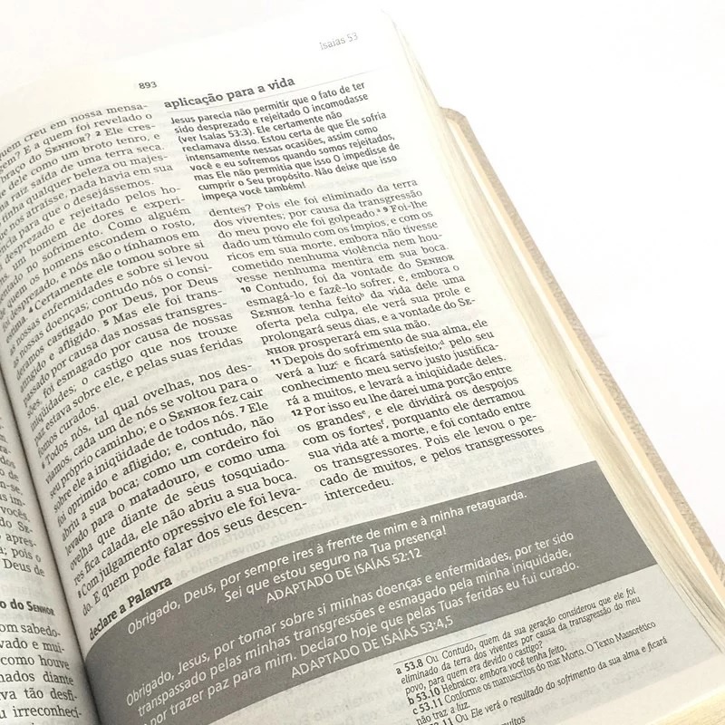 A Bíblia da Vida Diária com notas e comentários de Joyce Meyer Joyce Meyer, é uma grande escritora e também, uma das mais reconhecidas e respeitadas mestras da Bíblia, por isso, sua percepção das Escrituras é um recurso inestimável para muitos estudiosos da Palavra de Deus. Agora, a Bíblia de Estudos da Joyce Meyer é a ferramenta que você tem em mãos para compreender e amar a Bíblia tão profundamente quanto Joyce. O seu conhecimento da Bíblia Sagrada, fruto de pesquisas profundas, e a sua paixão por se relacionar com a sagrada Palavra de Deus diretamente com a vida diária são companheiros inspiradores que Joyce acrescenta à leitura da Nova Versão Internacional da Bíblia. A Bíblia pode ser de difícil leitura e compreensão. Seu objetivo ao oferecer a você esta Bíblia exclusiva com suas notas e comentários é construir pontes sólidas entre as palavras da Bíblia e a sua vida diária. Esperamos que a Bíblia de Estudos da Joyce Meyer o ajude a aplicar as verdades da palavra de Deus à sua vida através de suas contribuições, que incluem: - INTRODUÇÃO AOS LIVROS, que incluem um breve relato no início de cada livro da Bíblia. - PRINCÍPIOS PARA A VIDA, que traçam uma linha entre as palavras do texto e a experiência do leitor. - ARTIGOS PARA A VIDA DIÁRIA, que se concentram em passagens específicas e trazem a percepção e os ensinamentos de Joyce. - COLOCANDO A PALAVRA EM AÇÃO, que traz algumas das perguntas diretas de Joyce para incentivar a reflexão, e em seguida, a ação. - DECLARE A PALAVRA, que apresenta versículos adaptados para serem feitos como orações individuais de confissão, trazendo as promessas da Bíblia para um nível totalmente novo e pessoal. A abordagem simples e direta de Joyce em relação à vida tornou-se reconhecida por muitos como mestra, mentora, e amiga. Detalhes do produto: Autor: Joyce Meyer Editora: Bello Publicações Acabamento: Luxo Formato: 14 larg. X 21 alt. Número de Páginas: 1680