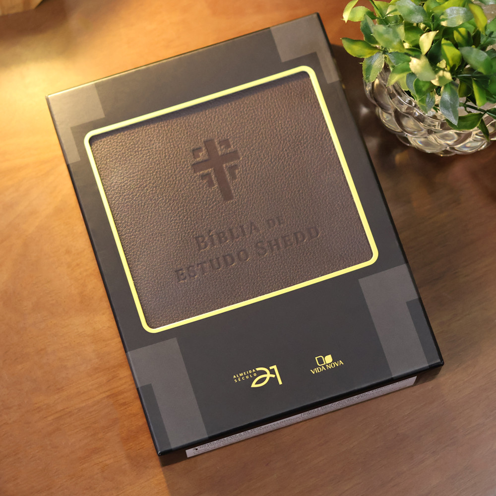 Bíblia de Estudo Shedd | A21 | Couro Legítimo Marrom A Bíblia de Estudo Shedd, agora com a versão Almeida Século 21, oferece uma experiência de estudo bíblico aprofundada e acessível. Ideal para pastores, líderes e todos os que buscam um entendimento mais profundo das Escrituras, esta edição combina a clareza da linguagem contemporânea com a riqueza de recursos de estudo. Esta Bíblia foi especialmente elaborada para auxiliar na compreensão e aplicação da Palavra de Deus. Se você busca uma ferramenta completa para aprofundar seus estudos, a Bíblia de Estudo Shedd é um recurso indispensável, com notas e recursos que enriquecem a sua jornada espiritual e o estudo bíblico. Introduções e esboços para cada livro da BíbliaNotas de estudo e notas homiléticasTabelas de pesos, moedas e medidas, além de harmonia dos EvangelhosEsboço da doutrina cristã e concordância bíblicaCronologia e mapas coloridos para um estudo visualmente ricoExplore as Escrituras com mais profundidade e clareza. A Bíblia de Estudo Shedd é um guia valioso para a sua vida cristã. Especificações da Bíblia de Estudo Shedd | A21 | Couro Legítimo Marrom: Título:Bíblia de Estudo Shedd | A21 | Couro Legítimo MarromLinguagem:A21 - Almeida Século 21Capa:CouroBorda:DouradaÍndice:NãoHarpa:NãoPalavras de Jesus em destaque:NãoLetra:GrandeFitilho:SimPáginas:1.976Dimensões:25,5 x 19,3 x 5 cmPeso:1,553 kgISBN:9786559673766Idioma:PortuguêsEditora:Vida NovaIndicação:Estudo Bíblico
