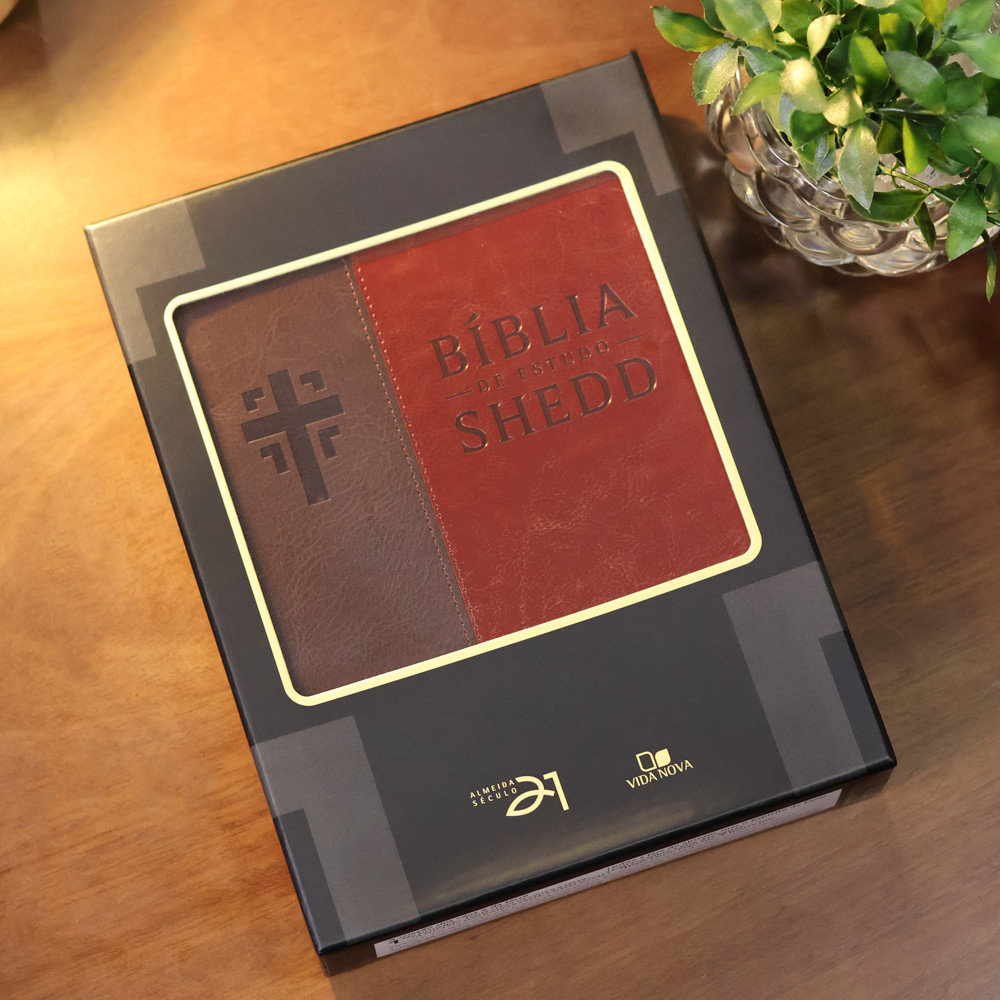 Bíblia de Estudo Shedd | A21 | Couro Sintético Marrom e Café A Bíblia de Estudo Shedd, agora com a versão Almeida Século 21, oferece uma experiência de estudo bíblico aprofundada e acessível. Ideal para pastores, líderes e todos os que buscam um entendimento mais profundo das Escrituras, esta edição combina a clareza da linguagem contemporânea com a riqueza de recursos de estudo. Esta Bíblia foi especialmente elaborada para auxiliar na compreensão e aplicação da Palavra de Deus. Se você busca uma ferramenta completa para aprofundar seus estudos, a Bíblia de Estudo Shedd é um recurso indispensável, com notas e recursos que enriquecem a sua jornada espiritual e o estudo bíblico. Introduções e esboços para cada livro da BíbliaNotas de estudo e notas homiléticasTabelas de pesos, moedas e medidas, além de harmonia dos EvangelhosEsboço da doutrina cristã e concordância bíblicaCronologia e mapas coloridos para um estudo visualmente ricoExplore as Escrituras com mais profundidade e clareza. A Bíblia de Estudo Shedd é um guia valioso para a sua vida cristã. Especificações da Bíblia de Estudo Shedd | A21 | Couro Sintético Marrom e Café: Título:Bíblia de Estudo Shedd | A21 | Couro Sintético Marrom e CaféLinguagem:A21 - Almeida Século 21Capa:CouroBorda:DouradaÍndice:NãoHarpa:NãoPalavras de Jesus em destaque:NãoLetra:GrandeFitilho:SimPáginas:1.976Dimensões:25,5 x 19,3 x 5 cmPeso:1,553 kgISBN:9786559673858Idioma:PortuguêsEditora:Vida NovaIndicação:Estudo Bíblico