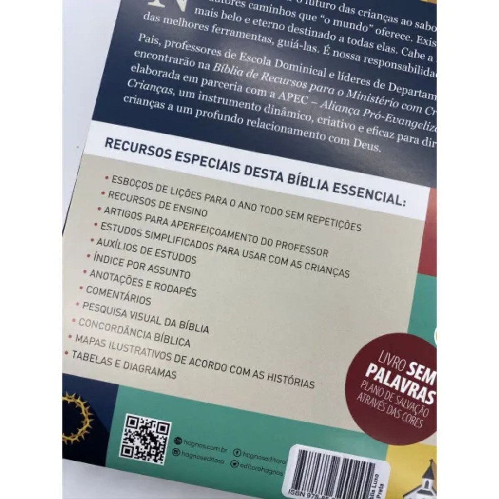 Bíblia de recursos para o ministério com crianças | APEC | Luxo PU marrom Bíblia de Recursos para o Ministério com Crianças - APEC: Guiando o Futuro com Base nas Escrituras O futuro das crianças não pode ser entregue ao acaso, submetido aos apelos sedutores de um mundo em constante transformação. Existe algo maior, mais belo e eterno reservado para cada uma delas. Neste sentido, surge a Bíblia de Recursos para o Ministério com Crianças, uma colaboração significativa com a APEC - Aliança Pró-Evangelização das Crianças, proporcionando uma ferramenta dinâmica e eficaz para orientar as crianças em sua jornada espiritual. Responsabilidade Compartilhada: Destinada a pais, professores de Escola Dominical e líderes de Departamento Infantil, esta Bíblia reconhece a importância vital de moldar o caráter e a fé das crianças desde cedo. É uma responsabilidade compartilhada que requer ferramentas educacionais robustas, inspiradoras e alinhadas com os princípios bíblicos. Biblioteca de Recursos: A Bíblia de Recursos para o Ministério com Crianças é uma verdadeira biblioteca de recursos para o ensino religioso às crianças. Com mais de uma centena de esboços de lições bíblicas, índice por assunto, pesquisa visual da Bíblia, artigos para aprimoramento do professor, estudos simplificados para uso com as crianças, concordância bíblica, auxílios de estudo, mapas e tabelas especiais, tudo reunido em um único volume. Parceria com a APEC: Elaborada em colaboração com a APEC, utilizando a tradução de Almeida, revista e atualizada, esta Bíblia é a ferramenta mais completa e eficiente para pais, educadores e líderes comprometidos em compartilhar a Palavra de Deus com as crianças. Destaca o amor especial que Jesus tinha por elas, guiando-as em sua jornada de fé. Assuma a responsabilidade de guiar o futuro das crianças com base nas Escrituras. A Bíblia de Recursos para o Ministério com Crianças é a companheira ideal nessa missão transcendental. Nesta bíblia você vai encontrar: - Esboços de lições para o ano todo sem repetições - Livro sem palavras (plano salvação em cores) - Recursos de ensino - Artigos para aperfeiçoamento do professor - Estudos simplificados para usar com as crianças - Auxílios de estudos - Índice por assunto - Anotações e rodapés - Comentários - Pesquisa visual da bíblia - Concordância bíblica - Mapas ilustrativos de acordo com as histórias - Tabelas e diagramas Autor: Hagnos e APEC Editora: Hagnos Acabamento: Capa Luxo PU marrom Dimensões: 17 cm largura X 24 cm altura Número de páginas: 1980