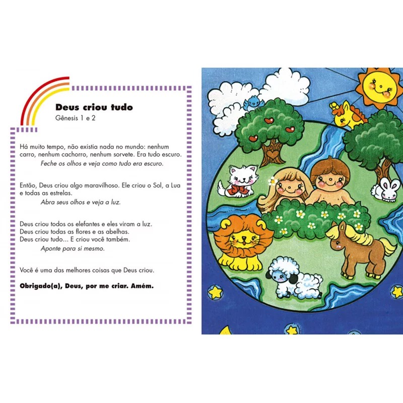 Apresente ao seu filho a emoção de ler a Bíblia de um modo que ele vai gostar. As histórias - especialmente selecionadas e ricamente ilustradas - mostrarão a ele pessoas e lugares novos. Cada capítulo inclui atividades simples e uma oração curta para aproximar a leitura da realidade dele. Aprender a Palavra de Deus é divertido ! Seu filho vai ficar esperando por esses momentos especiais em que vocês compartilharão as maravilhas da palavra de Deus.Editora: Ciranda CulturalEdição: 1, 2023Autor: Robin CurrieIdioma: PortuguêsPáginas: 48Dimensões: L 13.00 x A 17.00 x E 3.00ISBN: 9788575207550Coleção: Bíblia do bebêLinha Editorial: Ciranda Cultural - BíblicoFaixa Etária: 0-3 anosAssuntos (tags): Bíblia, Histórias bíblicas, Bebê, Diversão, AprendizadoBISAC: Bíblias / The Message / CriançasLinha de Produto: Capa duraEncadernação: Lombada quadradaAcabamento: AlmofadadaMaterial: Papel