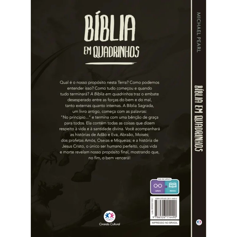 Autor (a): Michael Pearl A história da luta desesperada entre as forças do Bem e do Mal, tanto internas quanto externas. Qual é o nosso propósito nesta Terra? Como podemos entender isso? Como tudo começou e quando tudo terminará? Um livro antigo começa com as palavras: No princípio... e termina com uma bênção de graça para todos. Esse livro é a Bíblia Sagrada, inspirada por nosso Criador. Ela contém tudo o que diz respeito à vida e à santidade divina. Entretanto, como foi escrito por pessoas de uma cultura bem diferente da nossa, muitos acham esse livro antigo difícil de entender. Este livro foi feito para esses. Um pastor de uma pequena congregação na África Central disse: Tenho ensinado a Bíblia há 40 anos, mas não tinha uma ideia geral até ler essa HQ. Você conhecerá pessoas como:Adão e Eva, cujos momentos de fraqueza abriram a porta para uma tragédia histórica, mas também para a promessa de que um dia essa tragédia terá fim.Abraão, que se tornou um dos primeiros modelos de fé e esperança.Moisés, que libertou seu povo da escravidão, revelando nossa necessidade da ajuda divina.Acabe e Jezabel, cujos reinados sanguinários como rei e rainha demonstram que até as pessoas poderosas sofrem consequências de seus atos.Amós, Oseias e Miqueias, que mostraram, com suas profecias impressionantes, que o bem vencerá.Jesus Cristo, o único ser humano perfeito, cuja vida e morte revelam nosso propósito final. Editora: Ciranda Cultural ISBN: 9786526114490 Dimensões: 16 cm x 23 cm Número de Páginas: 328 Acabamento: Brochura
