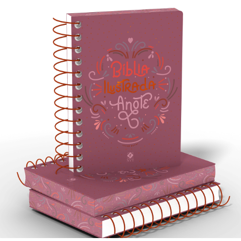 Bíblia Ilustrada Anote Rosa Brilhante - NVT - Letra Normal - Capa Dura Espiral