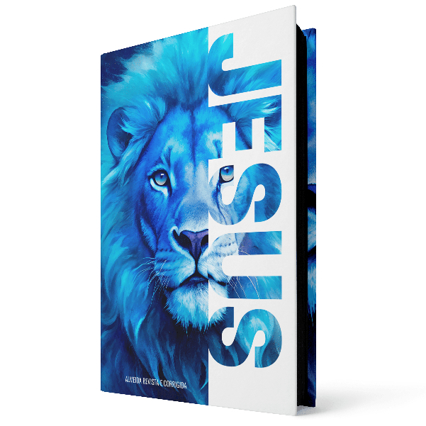 Bíblia Letra Grande Capa Dura Harpa E Corinhos Leão Azul Jesus Fitilho Moderna 033
