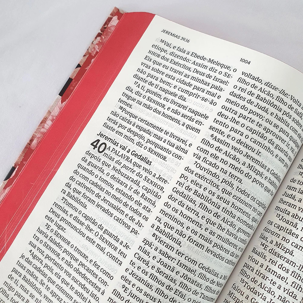 Bíblia Peônias Rosadas | Leitura Perfeita | ACF | Letra Grande | Capa DuraBíblia Peônias RosadasPara todas as mulheres cristãs, a Bíblia é um livro que verdadeiramente as acompanha. Ela é o livro que, quando não está aberto, fica sempre à vista, na cabeceira ou prateleira; é ela que abrimos todos os dias buscando ensinamento e consolo e que nos acompanha nos cultos e outros momentos de comunhão. A Bíblia é o livro mais pessoal na vida de alguém e, assim, é também uma extensão da pessoa que a carrega.A Bíblia Peônias Rosadas une design e praticidade: com uma capa nova e diferente do que está disponível no mercado, expressa delicadeza e feminilidade; no miolo, a letra leitura perfeita em tamanho grande garante.Páginas:1600Letra:GrandeFormato:22 x 14 x 3,5cm