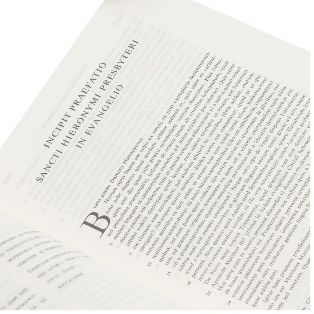 Quarta edição corrigida, de 1994, baseia-se na edição do Antigo Testamento dos monges do monastério de São Jerônimo, em Roma, e na edição do Novo Testamento de Wordsworth e White. Recursos Adicionais : • Edição em um único volume • Aparato crítico • Introduções em latim, alemão, francês, inglês, português e espanhol • 4ª edição inteiramente revisada a partir da edição dos monges do monastério de São Jeronimo, em Roma • Novo aparato revisado nos livros de Sabedoria, Profetas Menores, 1 e 2 Macabeus, Tito, Filemom e Hebreus • Apêndice: Oração de Manassés, 3 e 4 Esdras, Salmo 151, Epístola aos Laodicenses • Guia de sinais e abreviaturas • Editores: R. Gryson, Bonifatio Fischer, H.l. Frede, H.F.D. Sparks, W. Thiele Detalhes do Produto: Editora: SBB Acabamento: Capa Dura Dimensões: 13,5 larg. X 18,5 alt. Número de páginas: 2080