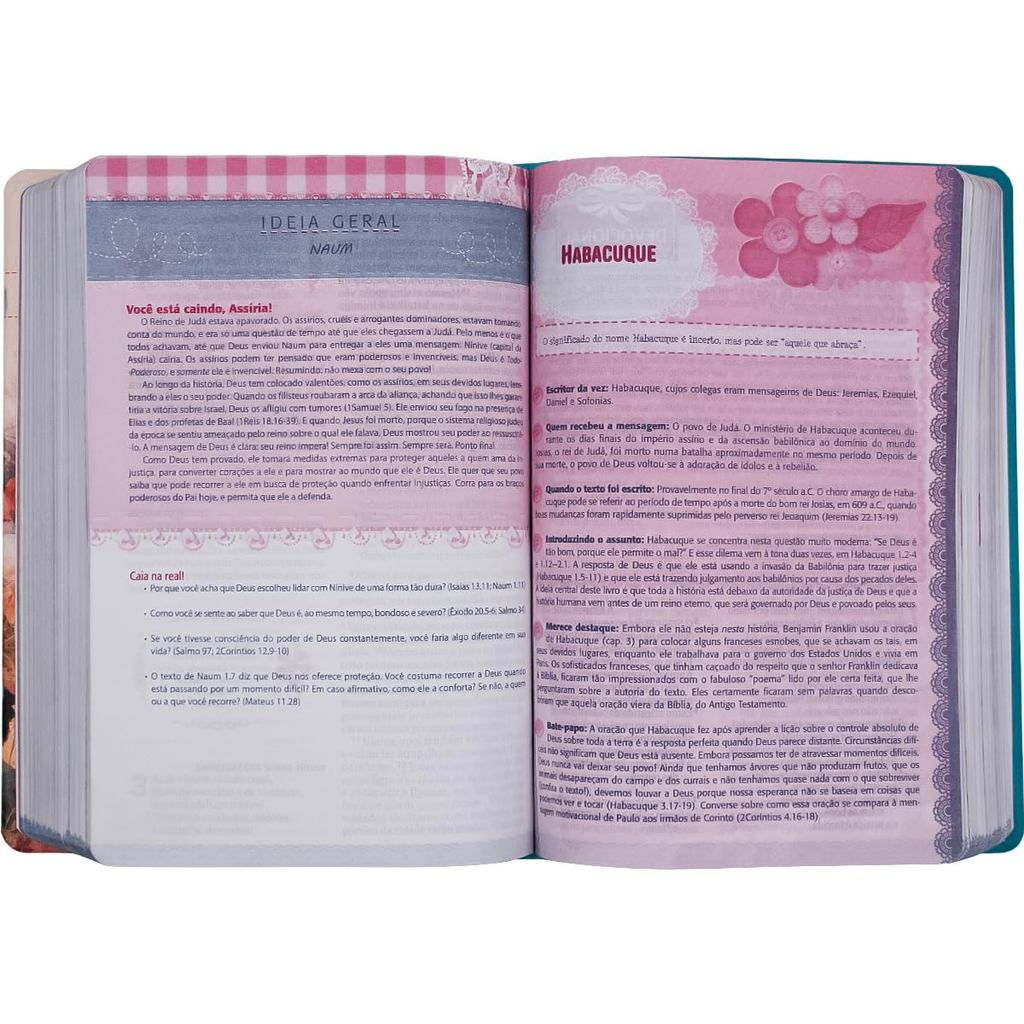 Uma Bíblia pensada especialmente para o coração das meninas. Esta edição exclusiva da Bíblia Entre Meninas e Deus foi desenvolvida para criar uma conexão única e pessoal entre as jovens e a Palavra de Deus. Com a Nova Tradução na Linguagem de Hoje (NTLH), as Escrituras ganham vida em uma linguagem clara, atual e acessível, perfeita para a nova geração. Recursos Especiais: Conteúdo direcionado para meninas e adolescentes Linguagem contemporânea e acessível da tradução NTLH Formato prático e elegante (13,5 x 20,0 cm) 1840 páginas de conteúdo inspirador Impressão em duas cores para melhor experiência de leitura Ideal para devocionais pessoais e estudos em grupo Acabamento: Capa luxo com impressão especial Design moderno e feminino Encadernação resistente para uso diário Tamanho perfeito para levar na bolsa ou mochila Impressão nacional de alta qualidade ISBN: 7899938429259
