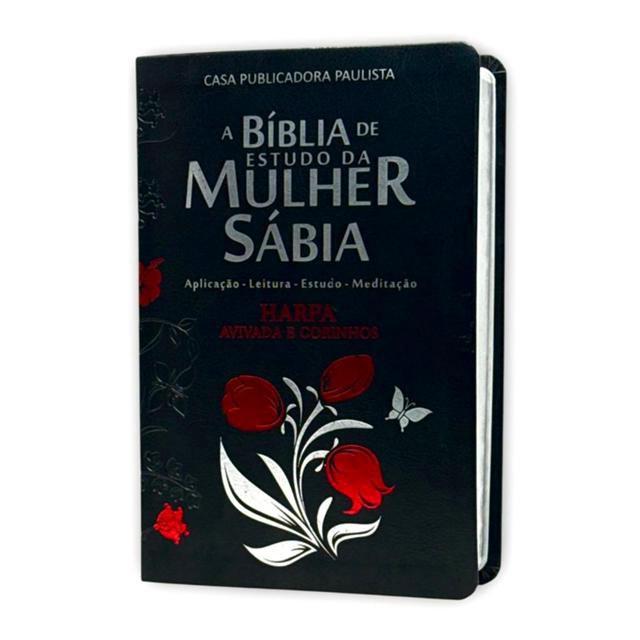Bíblia Sagrada Evangélica da Mulher Sábia Com Estudo Arc Capa Mole Tulipa Preta | Letra Hipergigante + Harpa