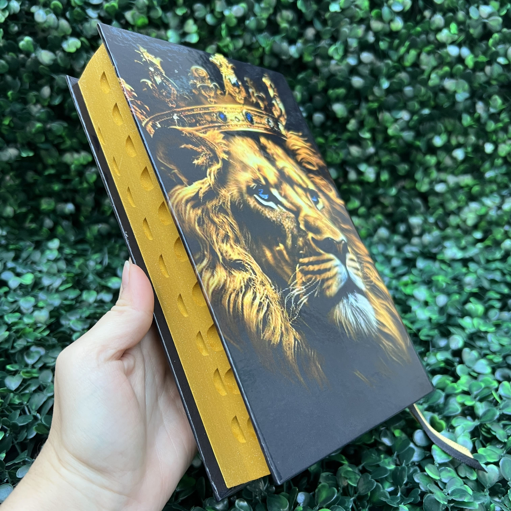 Bíblia Sagrada Evangélica Ele Reina Leão Capa Dura Com Harpa e Índice LETRA MÉDIA Versão ARC Jovem