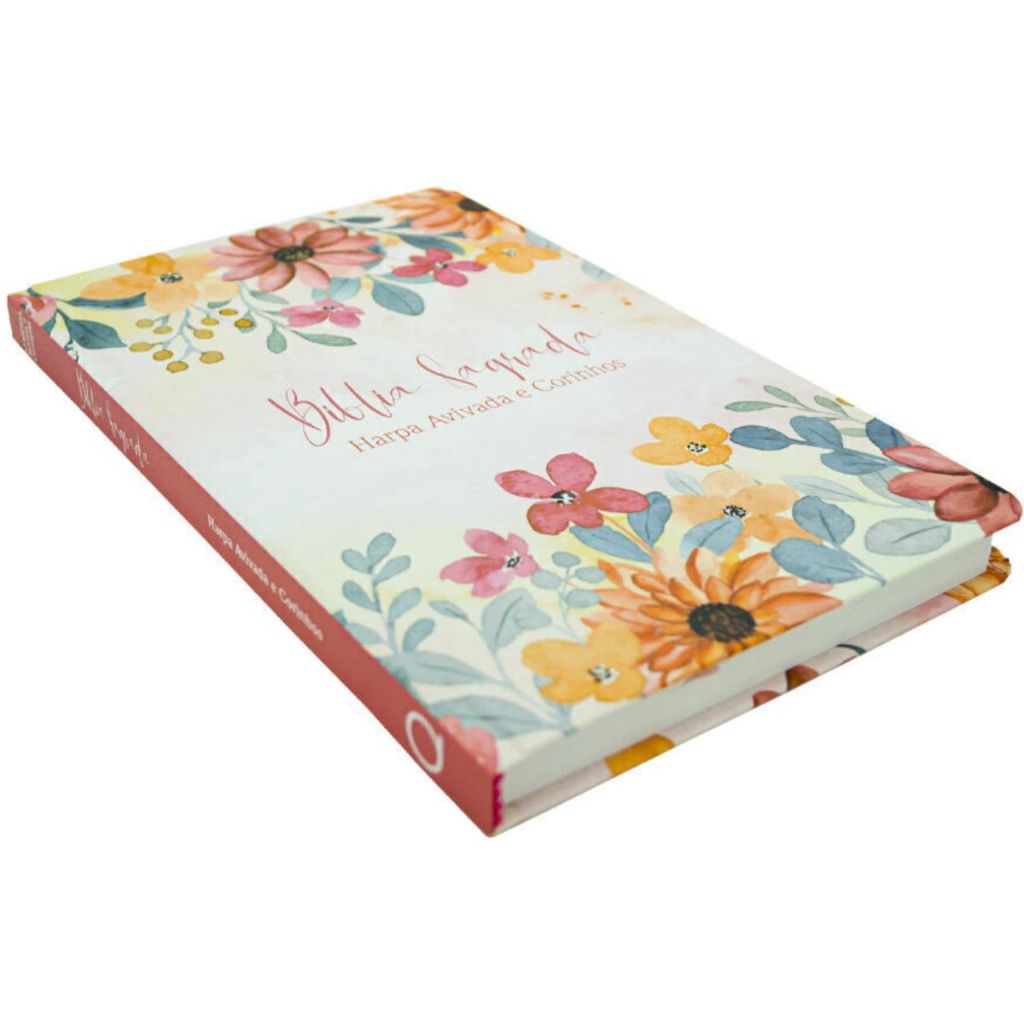 Bíblia Sagrada Feminina RC Slim Capa Dura Com Harpa Avivada E Corinhos Flores Aquarela