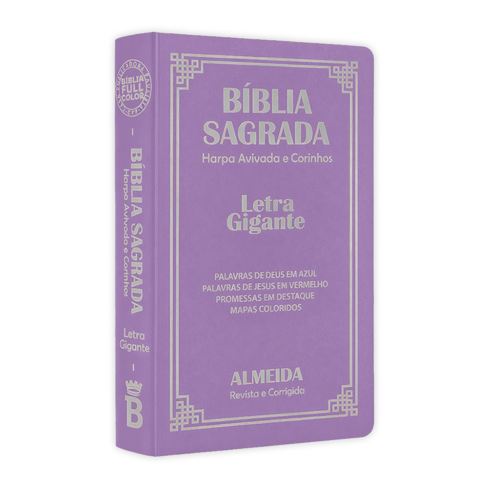 Bíblia Sagrada Gigante - Lilás - popular | ARC - João Ferreira de Almeida - Harpas e Corinhos - Fullcolor A Bíblia Sagrada Gigante na tradução Almeida Revista e Corrigida (ARC) é uma edição desenvolvida para oferecer leitura confortável, clareza e fidelidade às Escrituras. Reconhecida como uma das versões mais tradicionais e utilizadas no Brasil, a ARC é amplamente adotada em igrejas, estudos bíblicos e momentos devocionais. Com design moderno e acabamento em tecido semi-impermeável, esta edição combina durabilidade, funcionalidade e excelente apresentação. Principais características e diferenciais: Tradução Almeida Revista e Corrigida (ARC): versão clássica, fiel aos textos originais e amplamente reconhecida no meio cristão Letra gigante: maior conforto visual, ideal para leitura prolongada Palavras de Jesus em vermelho: destaque especial para os ensinamentos de Cristo Full color: organização visual que facilita a leitura e compreensão do conteúdo Harpa Cristã e Corinhos: hinário completo para louvor e adoração Capa em tecido semi-impermeável: resistência, proteção e acabamento de qualidade Linguagem acessível: leitura fluida e de fácil entendimento Conteúdo da edição: Antigo e Novo Testamento completos Harpa Cristã e Corinhos Recursos visuais que auxiliam no estudo bíblico Ficha técnica: Tradução: João Ferreira de Almeida – Revista e Corrigida (ARC) Capa: Tecido semi-impermeável Páginas: 830 Tamanho da letra: Gigante Dimensões: aproximadamente 14 x 21 cm Peso aproximado: 700 g Conteúdo adicional: Harpa Cristã e Corinhos Destaque: Palavras de Jesus em vermelho Idioma: Português Benefícios do produto: Ideal para leitura diária, estudos e uso em cultos Excelente conforto visual com letra ampliada Versão tradicional amplamente utilizada no Brasil Design moderno com acabamento durável Informações adicionais: Produto novo e completo (Antigo e Novo Testamento) Envio rápido com embalagem reforçada Excelente opção para uso pessoal, presente ou evangelização Esta edição une tradição, qualidade e funcionalidade, sendo uma excelente escolha para quem busca uma Bíblia completa, prática e com excelente legibilidade.