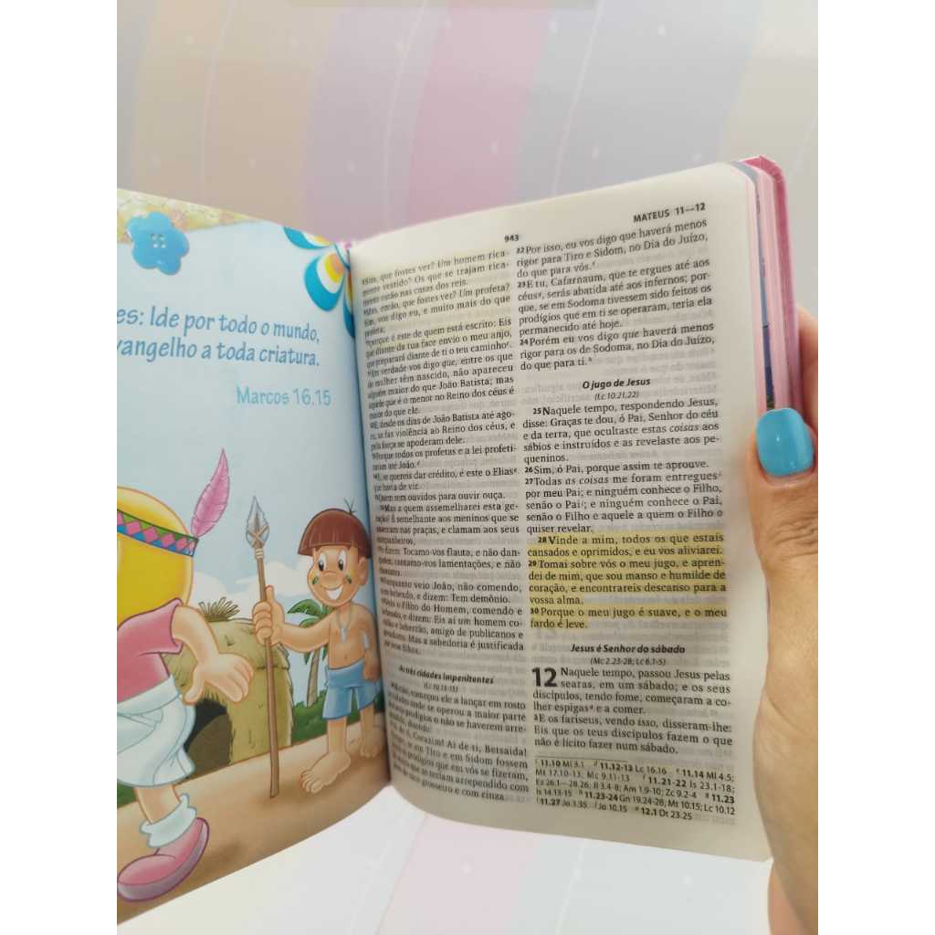 Bíblia Sagrada Turminha Da Graça Capa Rosa A Bíblia da Turminha da Graça é uma forma divertida das crianças aprenderem a Palavra de Deus. Ela vem com ilustrações dos personagens da Turminha, com encartes intercalados com versículos bíblicos e historinhas em quadrinhos que esclarecem de forma simples clara alguns temas da nossa vida cristã. Recursos Encartes ilustrados Resumo dos livros da Bíblia Trechos das bênçãos de Deus destacados Curiosidades História em quadrinhos Plano anual de leitura Informações adicionais 14x21cm 1248 Páginas