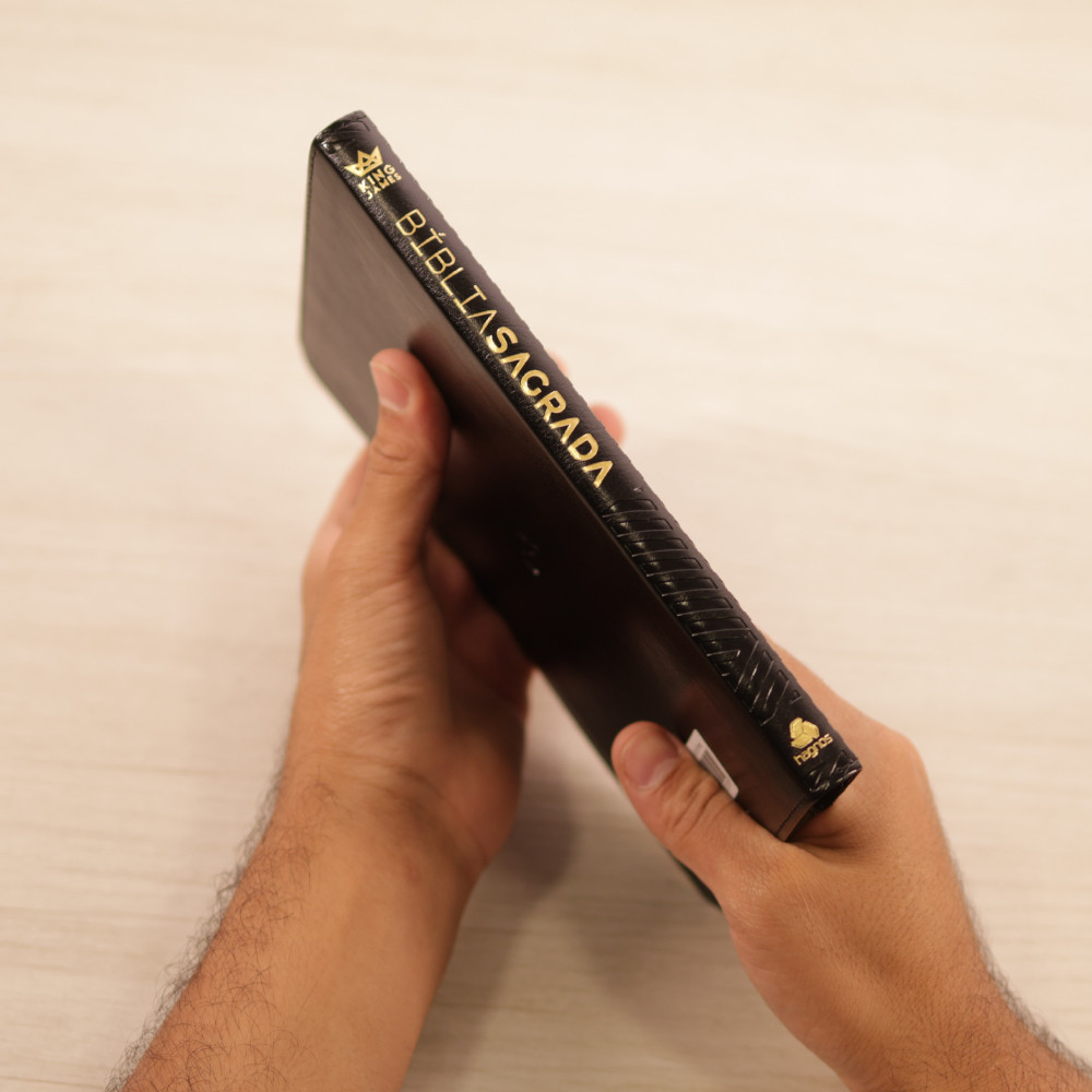 Bíblia Sagrada King James Clássica Bíblia Sagrada King James – ULTRAFINA SLIM Características Exclusivas: - Extremamente fina, com apenas 1,5 cm de lombada.- 768 páginas e pesando apenas 380 gramas.- Papel de alta qualidade, sem transparência, para uma leitura mais confortável.- Disponível em 4 opções de capa: Preto, Azul, Turquesa e Violeta.- Fitilho marcador de páginas para maior praticidade.- Capa Luxo em PU, com Hotstamping e acabamento em queima (textura elegante).- Lateral metalizada colorida, agregando sofisticação ao design. A King James Version (KJV) Publicada em 1611, a King James Version (KJV) é uma das traduções mais influentes e amplamente disseminadas da Bíblia. Patrocinada pelo rei Tiago I da Inglaterra, ela ficou conhecida como a "Versão Autorizada", refletindo sua relevância histórica e religiosa. Esta versão do Antigo e Novo Testamento em inglês foi concebida após décadas de tentativas de traduções em inglês, iniciadas com João Wycliffe e seguidas por William Tyndale, cujas obras, apesar da perseguição e censura, formaram a base para a KJV. A tradução foi um marco na história das Escrituras, pois unificou os cristãos de várias denominações sob uma única versão e se tornou um pilar da cultura religiosa mundial. Seu estilo lírico e rítmico, aliado à elegância da língua inglesa da época, conferiu à KJV uma durabilidade que outras traduções não alcançaram. Durante séculos, ela foi a principal versão utilizada em igrejas, influenciando profundamente a literatura, a música e a cultura popular. A Jornada da King James Clássica no Brasil A Editora Hagnos, em uma iniciativa louvável, trouxe a King James Clássica (KJC) para o público brasileiro, adaptando a renomada tradução inglesa para o português, mantendo sua clareza e elegância. O objetivo é permitir que os leitores brasileiros apreciem o "sabor" e a precisão da KJV, com uma tradução que se destaca pela simplicidade e fidelidade ao texto original. A KJC se diferencia de outras versões, como a de João Ferreira de Almeida, pela sua estrutura sintática mais simples e direta, o que proporciona uma leitura mais fluída e acessível. Em comparação com traduções mais antigas e com versões contemporâneas como a Nova Versão Internacional (NVI), a KJC oferece uma experiência única, equilibrando tradição e modernidade. A Bíblia Sagrada King James – ULTRAFINA SLIM é a escolha ideal para aqueles que buscam praticidade, sofisticação e uma tradução que preserve a riqueza da linguagem bíblica com clareza e beleza, seja para o estudo pessoal ou para o culto. Páginas:768Dimensões:Altura: 21,5 cm Largura: 14,5 cm Profundidade: 1,5 cm