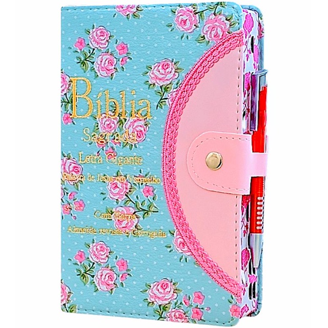 Bíblia Sagrada Letra Gigante com Harpa Botão e Caneta Feminina