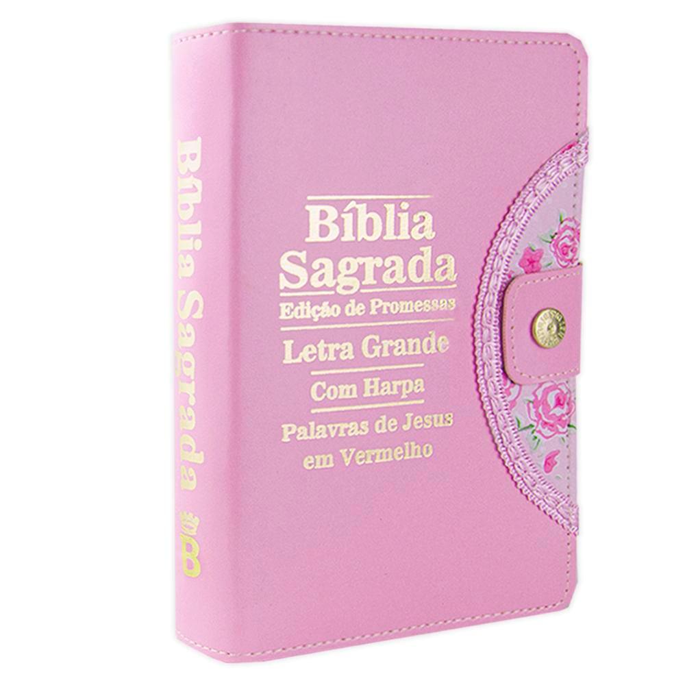 Bíblia Sagrada Letra Grande - Rosa - Botão e Caneta Revista e Corrigida C/ Harpa