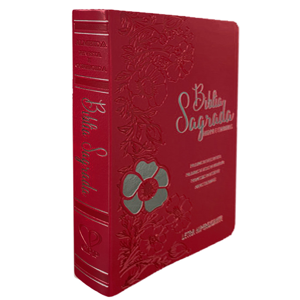 Bíblia Sagrada | Letra Hipergigante | ARC | Harpa Avivada e Corinhos | Índice | Capa PU Luxo Floral Dália Vermelha A Bíblia Sagrada na versão Almeida Revista e Corrigida (ARC), uma das mais utilizadas pelos evangélicos no Brasil, preserva a fidelidade dos textos originais traduzidos pelo missionário português João Ferreira de Almeida. Esta edição apresenta tecnologia full color, com recursos que tornam a leitura mais envolvente e didática: Mapas coloridos – auxiliam na compreensão geográfica dos acontecimentos bíblicos.Promessas em destaque – facilitam a identificação das promessas divinas.Palavras de Deus em azul – ressaltam as mensagens do Criador.Palavras de Jesus em vermelho – destacam os ensinamentos do Mestre. Páginas:1535 Formato:15 x 3 x 21,8 cm