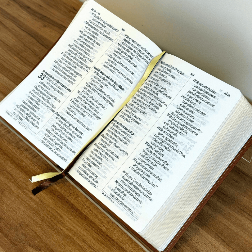 Com design elegante e letra supergigante, esta Bíblia oferece uma leitura mais confortável e acessível. A tradução utilizada é a Nova Almeida Atualizada (NAA), lançada em 2017 pela SBB após uma revisão cuidadosa da tradicional Almeida Revista e Atualizada. O resultado é um texto fiel às Escrituras, com linguagem atual e em conformidade com o português padrão do Brasil. Ideal para quem busca clareza sem abrir mão da reverência bíblica. Especificações da Bíblia: Título: Bíblia Sagrada | Letra Supergigante | NAA | Capa Marrom Leão Linguagem: Nova Almeida Atualizada Capa: Marrom Leão Acabamento: Capa Luxo Borda: Dourada Índice: Não Harpa: Não Palavras de Jesus em destaque: Sim Letra: Supergigante Fitilho: Sim. Fitilho Duplo. Páginas: 2138 Dimensões: Largura 14 cm Comprimento 20,5 cm Altura 4 cm Peso: 0.879 kg ISBN: 7899938428924 Editora: SBB