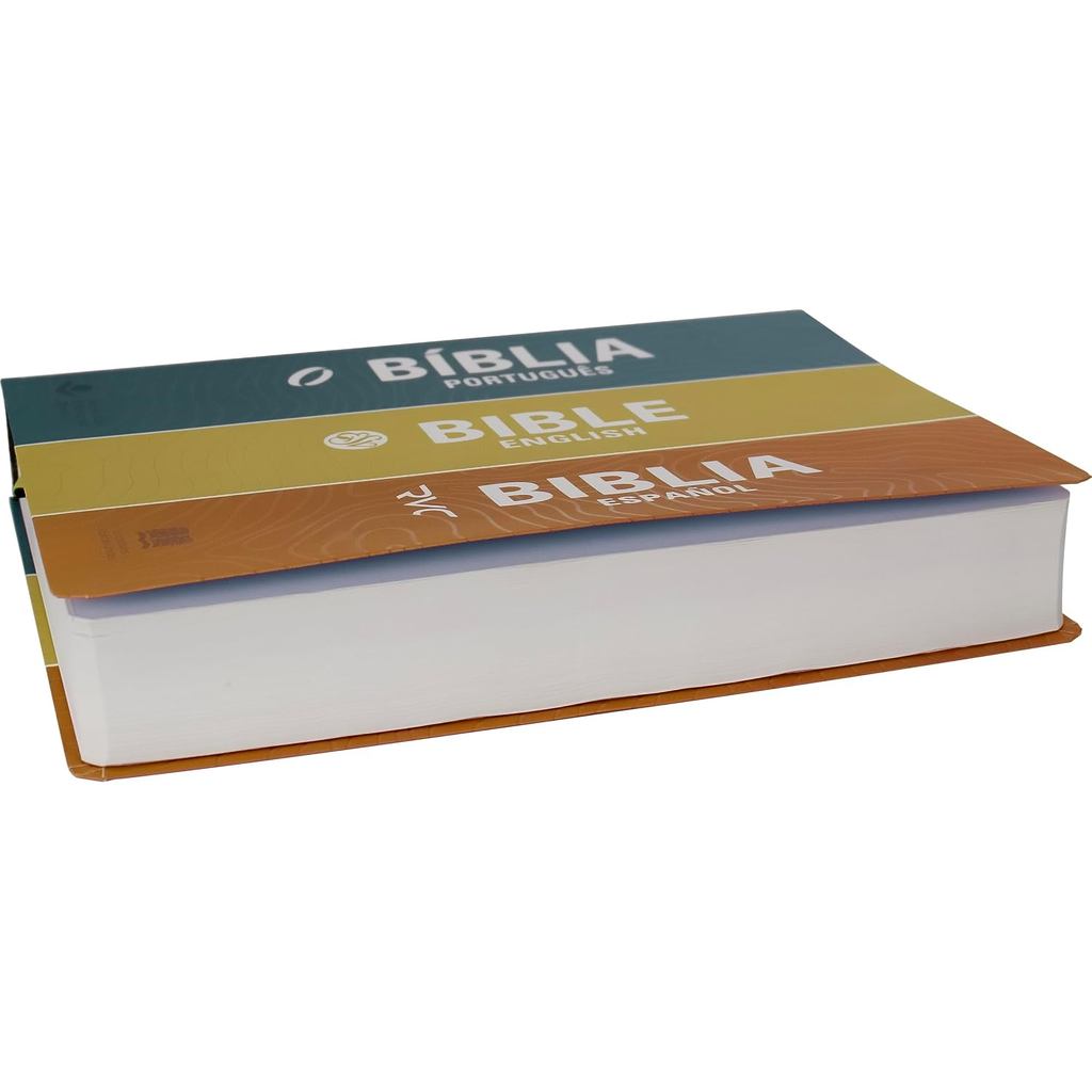 Bíblia Sagrada NAA/ESV/RVC | Trilíngue | Letra Normal | Semiflexível | Três Cores