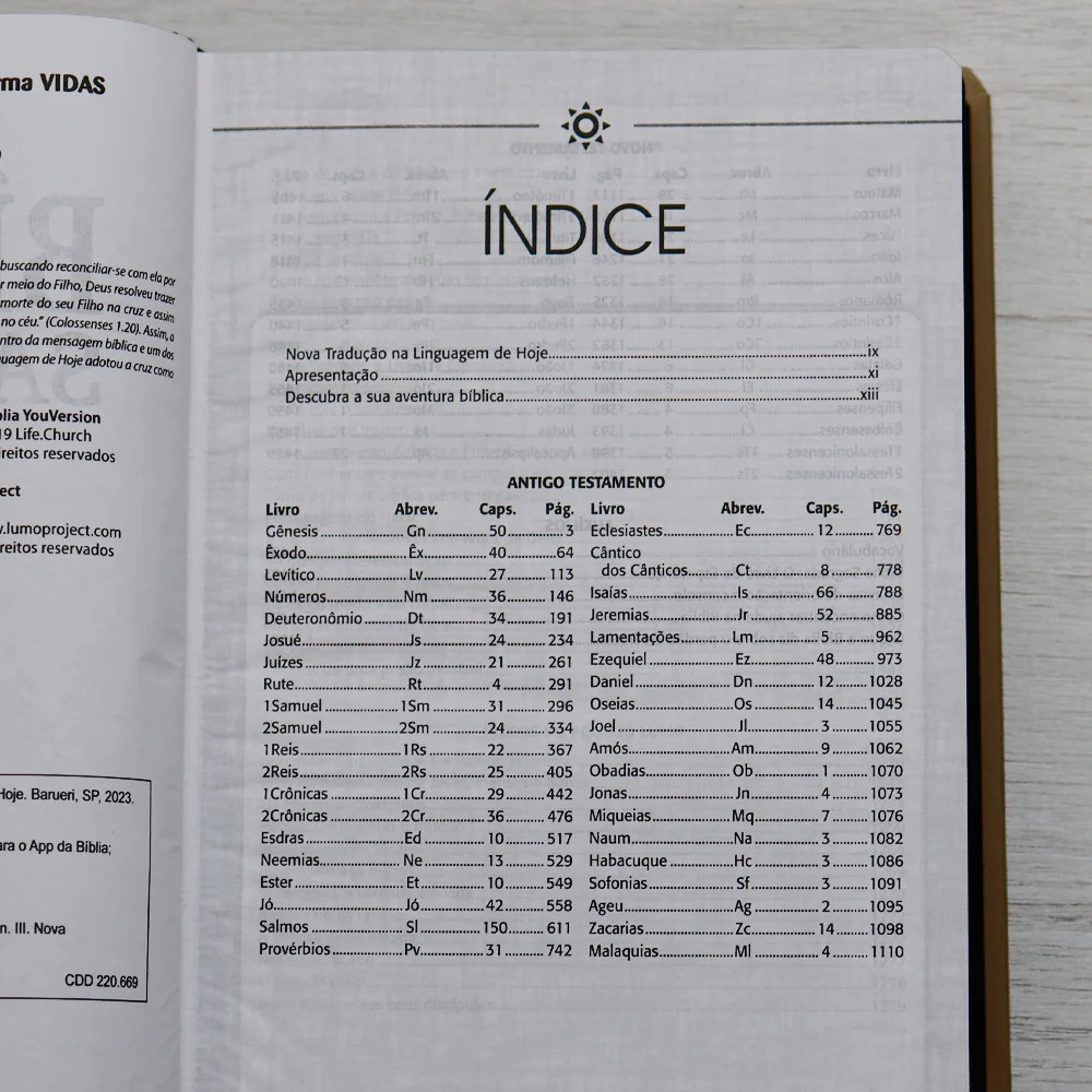 Bíblia Sagrada | NTLH | YouVersion | Jesus Cristo Dourada Bíblia YouVersion – Nova Tradução na Linguagem de Hoje (NTLH) Uma experiência transformadora com a Palavra de Deus ao seu alcance Mergulhe nas Escrituras Sagradas de uma forma clara, envolvente e acessível. A Bíblia YouVersion – NTLH foi criada para tornar a leitura bíblica mais dinâmica e inspiradora, eliminando barreiras e aproximando você dos ensinamentos divinos com linguagem simples e recursos inovadores. Sobre a YouVersion Ministério cristão líder em acesso digital às Escrituras, a YouVersion já impactou milhões de pessoas em todo o mundo, oferecendo 1.889 versões da Bíblia em 1.306 idiomas, incluindo as traduções da Sociedade Bíblica do Brasil (SBB) – tudo gratuitamente. Recursos Exclusivos Plano de Leitura Anual – Conclua a leitura da Bíblia em um ano, com um roteiro organizado e acessível.Notas e Referências Cruzadas – Amplie seu entendimento das Escrituras com explicações claras e conexões entre os textos sagrados.Cronologia Bíblica – Entenda a sequência dos eventos e a relação entre os personagens, enriquecendo sua visão da história bíblica.Passagens para Momentos Especiais – Versículos selecionados para fortalecimento, consolo e reflexão em diferentes situações da vida.Espaço para Anotações – Registre suas revelações, orações e insights durante sua jornada de fé.Índice Temático e Vocabulário Bíblico – Encontre rapidamente temas importantes e compreenda termos-chave com facilidade. Tecnologia que Conecta Você à Palavra +2.200 QR Codes Interativos – Acesse recursos multimídia que transformam sua experiência com a Bíblia:Vídeos do Projeto Lumo – Assista a reconstituições cinematográficas dos Evangelhos e viva as narrativas de forma imersiva.Áudio da Bíblia – Ouça a Palavra de Deus em qualquer lugar, transformando seu dia em um momento de devoção.Planos de Leitura Personalizados – Escolha estudos bíblicos de acordo com suas necessidades e objetivos espirituais.Imagens Ilustradas de Versículos – Medite e compartilhe versos inspiradores em formato visual. Mais que uma Bíblia, uma Experiência Transformadora A Bíblia YouVersion – NTLH não é apenas um livro, mas uma ferramenta dinâmica que aproxima você de Deus, combinando a riqueza das Escrituras com a praticidade da tecnologia. Descubra. Medite. Transforme-se. Experimente a Bíblia como nunca antes! Páginas:1.501Dimensões:14 x 3 x 20,5 cm