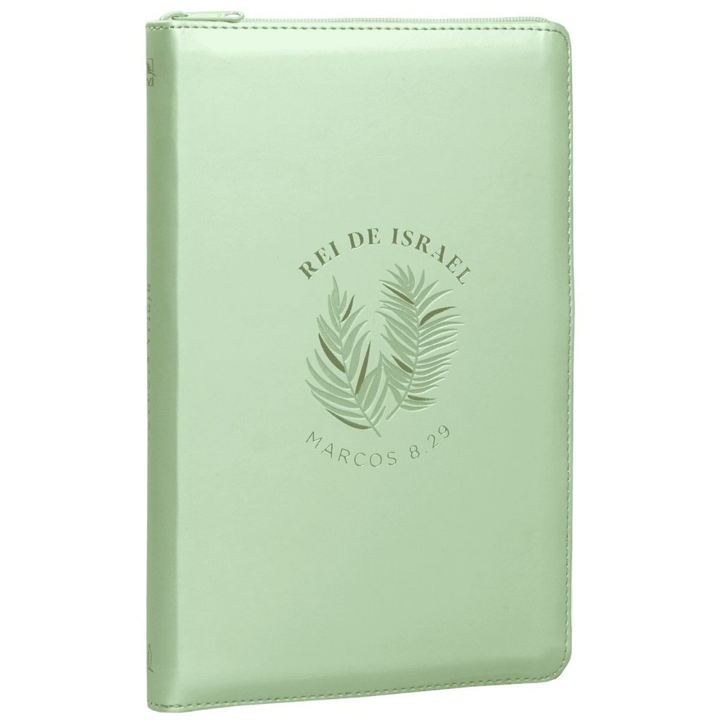 Parte da coleção de Bíblias A promessa, a capa Rei de Israel simboliza a chegada de Jesus a Jerusalém. As folhas de palmeira trazem alusão ao início da jornada de Cristo, que é recebido na cidade com folhas de palmeiras, trazendo reconhecimento da vinda de Cristo, o Salvador. Conta com uma capa em couro soft verde, desenho em baixo relevo e um toque especial em hot stamp. Seu grande diferencial é o fechamento em zíper na cor verde, que traz conforto e praticidade para levá-la a qualquer lugar, seja na igreja ou para carregar na bolsa no dia a dia. Além disso, seu texto está na versão NVI (Nova Versão Internacional), que se baseia na precisão, clareza e uma abordagem contemporânea e, ao mesmo, fiel ao texto original. Nela, você encontrará ainda a fonte Leitura Perfeita. Desenvolvida exclusivamente para a Thomas Nelson Brasil, a Leitura Perfeita é uma fonte singular, moderna, bonita, clara e legível, ao mesmo tempo em que integra os melhores avanços em tipografia de bíblias modernas. O resultado é uma tipologia que traz total conforto na leitura em qualquer tamanho . Adquira a Bíblia Rei de Israel e tenha a palavra de Deus contigo todos os dias! Características : - Texto na tradução NVI (Nova Versão Internacional) - Capa em couro soft - Fonte leitura perfeita - Hot Stamp - Acabamento lateral em zíper Detalhes do Produto: Editora: Thomas Nelson Brasil Acabamento: Capa luxo soft emborrachada Dimensões: 14 larg. X 21 alt. Número de páginas: 1184