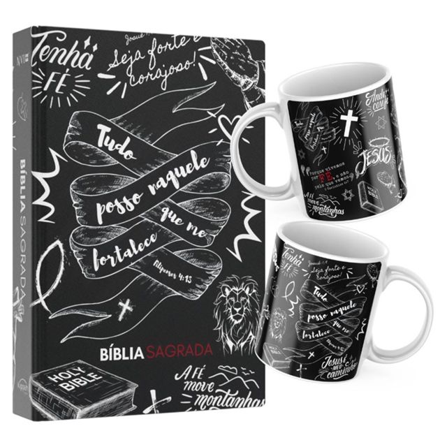 Combo Caneca Preta + Bíblia Sagrada | NVI | Jovem Cristão | Capa Dura Descubra a Bíblia Sagrada NVI Explore as Escrituras de maneira clara e acessível com a Nova Versão Internacional (NVI) da Bíblia! Publicada pela Sociedade Bíblica Internacional, a NVI é uma tradução moderna que mantém a fidelidade aos textos originais, oferecendo uma leitura envolvente e compreensível. Por que escolher a Bíblia NVI? Linguagem contemporânea para fácil compreensão. Fidelidade aos manuscritos originais. Inclui Antigo e Novo Testamento para uma experiência completa. Amplamente Utilizada e Amada A Bíblia NVI é apreciada por comunidades cristãs de língua portuguesa, oferecendo uma visão abrangente das Escrituras. Seja você um estudioso da Bíblia ou alguém buscando inspiração, a NVI é para todos. Experimente a Palavra de Deus de uma Nova Maneira com a Bíblia NVI. Seja Inspirado e Transformado! Um pouco sobre o texto da NVI: A Bíblia NVI refere-se à "Nova Versão Internacional", uma tradução da Bíblia para a língua portuguesa que busca oferecer uma leitura clara e compreensível, utilizando uma linguagem contemporânea. A NVI foi publicada pela Sociedade Bíblica Internacional e foi lançada em 1993. Ela é resultado de um trabalho de equipe de diversos estudiosos e especialistas em línguas bíblicas. A ideia por trás da NVI era proporcionar uma tradução que fosse ao mesmo tempo precisa e acessível ao público em geral. Ela se esforça para manter a fidelidade aos manuscritos originais, ao mesmo tempo em que utiliza uma linguagem mais contemporânea para facilitar a compreensão do texto por parte dos leitores. A NVI inclui tanto o Antigo Testamento quanto o Novo Testamento, proporcionando uma visão abrangente das Escrituras. Ela tem sido amplamente utilizada em diversas comunidades cristãs de língua portuguesa, sendo apreciada por muitos por sua clareza e acessibilidade. Palavras chaves: Bíblia NVI; NVI; Nova Versão Internacional; Escrituras em Português; Tradução Moderna da Bíblia; Palavra de Deus; Antigo Testamento; Novo Testamento; Sociedade Bíblica Internacional; Leitura Inspiradora; Experiência Bíblica Completa; bíblia capa dura; Palavras de Cristo; Experiência Transformadora; Versão Atualizada da Bíblia;