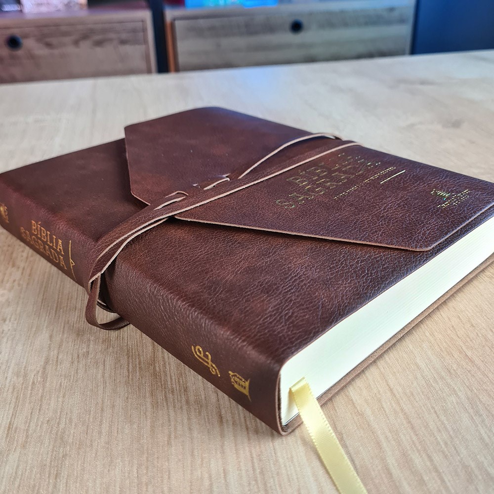 Bíblia Sagrada Quantas vezes estamos na igreja e ouvimos algo tão tocante que queremos registrar, mas não podemos porque não temos onde anotar? Você até gostaria de escrever na própria Bíblia, para que aquela informação complementasse seus estudos bíblicos, mas ela não tem espaço. Esta Bíblia chegou para resolver esse problema. Pensada para você que gosta de registrar comentários e anotações que enriqueçam a compreensão do texto bíblico, Sua Bíblia foi elaborada, agora em letra grande e com textos dispostos em coluna única, para incluir anotações sem prejudicar a leitura das Escrituras. Com papel diferenciado que dá mais destaque às suas anotações e mais visibilidade ao texto, graças à fonte Leitura Perfeita, especialmente desenvolvida pela Thomas Nelson Brasil, esta é a ferramenta ideal para aqueles que desejam aprofundar seu relacionamento com a Palavra. Características: Texto na tradução NVI (Nova Versão Internacional) Capa em courosoft (PU) com fechamento em tira Papel amarelado de alta gramatura e opacidade Pintura Trilateral Fonte Leitura Perfeita Letra tamanho tradicional Lombada costurada para total abertura Cantos arredondados