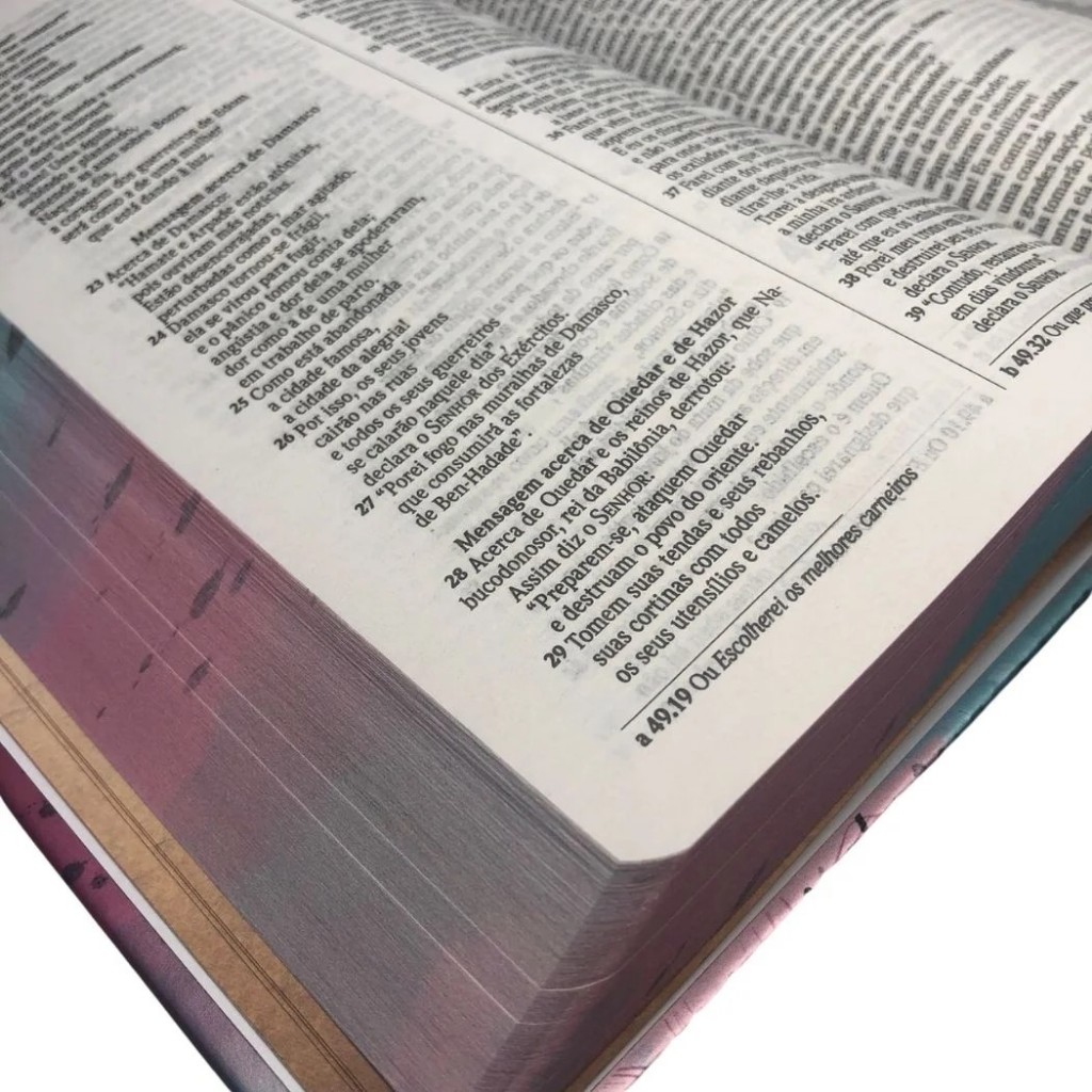 Esta edição da Bíblia Nova Versão Internacional (NVI) “Flor Artística” apresenta a tradução em letra normal com palavras de Jesus em vermelho, oferecendo leitura confortável e moderna. A capa dura com estampa floral é elegante e resistente, aliando estilo à durabilidade. Com exatamente 768 páginas e peso de 480 g, este exemplar tem formato compacto (14 × 21 cm), ideal para leitura diária, estudo ou presentear de forma significativa. Contém a Bíblia completa (Antigo e Novo Testamento), com design visual atraente e acabamento cuidadoso.
