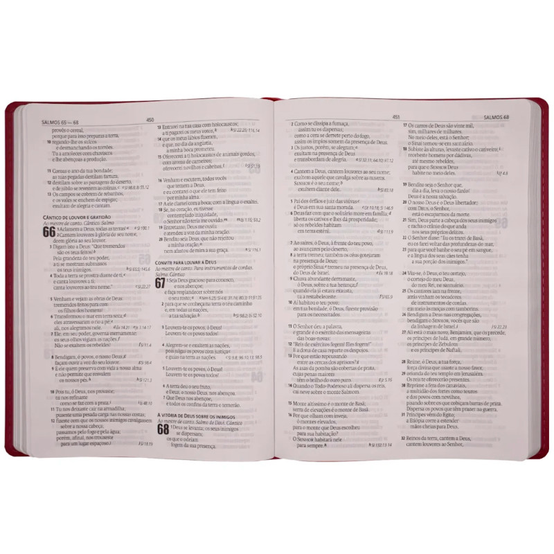 Bíblia Sagrada Slim | NAA | Luxo Cruz RosaBíblia Sagrada – Capa Couro Sintético Slim – Palavras de Jesus em Vermelho – Nova Almeida Atualizada (NAA) Uma Bíblia Elegante, Prática e Rica em Recursos para Sua Jornada Espiritual Leve a Palavra de Deus com você para qualquer lugar com esta Bíblia Sagrada em formato slim, perfeita para quem busca praticidade, sofisticação e profundidade bíblica. Com capa em couro sintético de alta resistência, esta edição une durabilidade e estilo, sendo ideal para uso pessoal, estudos ou presentear em ocasiões especiais. Destaques desta Edição:Tradução Nova Almeida Atualizada (NAA) – Linguagem fiel aos originais e acessível para leitura diária. Palavras de Jesus em vermelho – Destaque especial nos Evangelhos para os ensinamentos diretos do Salvador.Formato slim e leve – Fácil de carregar, sem abrir mão do texto bíblico completo.Referências cruzadas – Auxiliam no estudo e conexão entre passagens.Capa em couro sintético premium – Resistente e elegante para longa duração.Dimensões práticas – Confortável para leitura em casa, na igreja ou em viagens.Ideal para Presentes ou Uso PessoalSeja para presentear em batizados, casamentos ou aniversários, ou para seu momento devocional, esta Bíblia combina funcionalidade e beleza em um único volume. Fortaleça sua fé com uma edição que une tradição e modernidade – perfeita para quem valoriza a Palavra de Deus em todos os momentos. Especificações Técnicas: Título:Bíblia Sagrada Slim | NAA | Luxo Cruz RosaLinguagem:Nova Almeida AtualizadaCapa:BrochuraAcabamento:LuxoBorda:DouradaÍndice:NãoHarpa:NãoPalavras de Jesus em destaque:SimLetra:NormalFitilho:SimPáginas:1.010Dimensões:24 x 17,5 x 2,2 cmPeso:0,689 kgISBN:7899938429471Editora:SBB