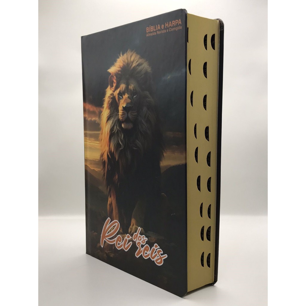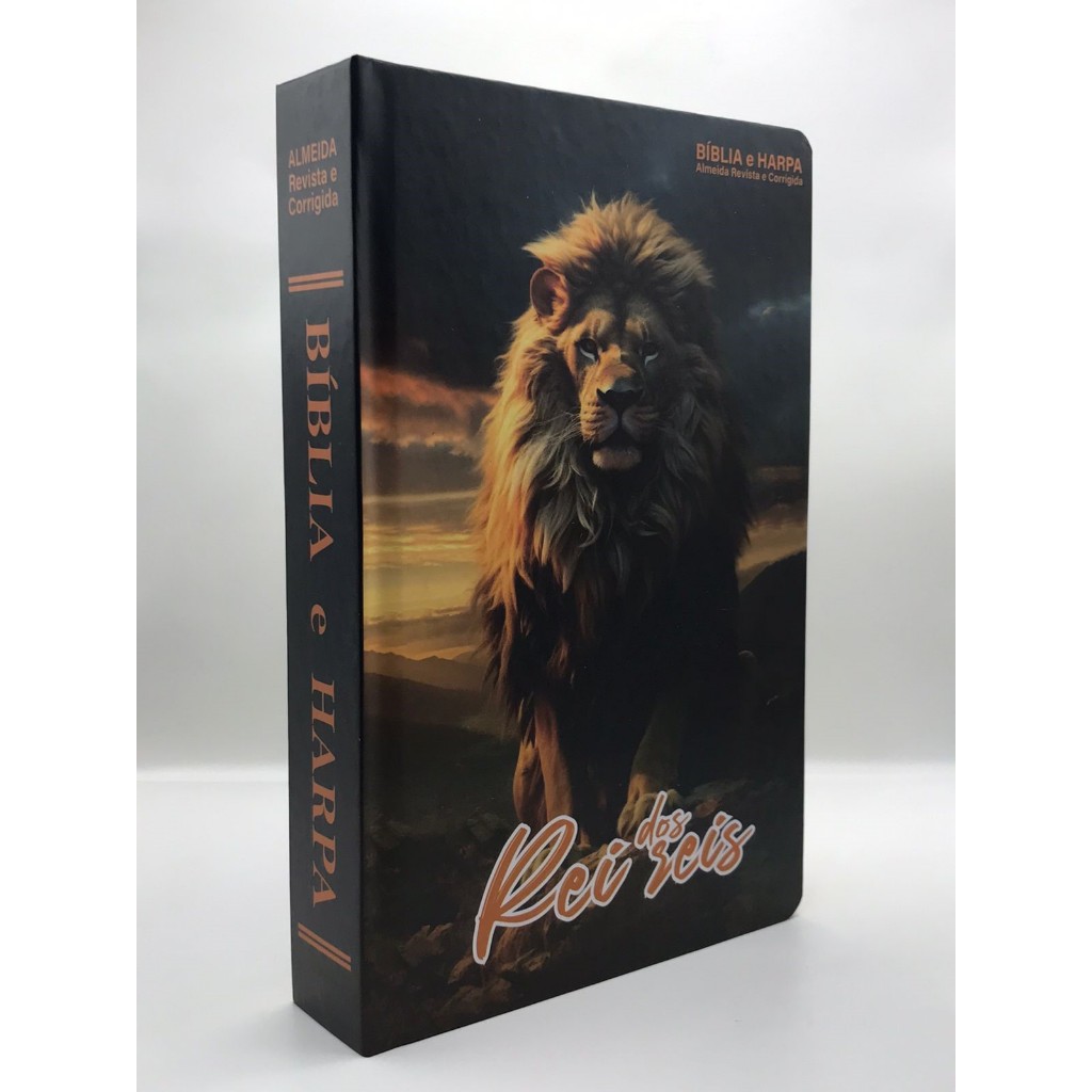 Bíblia Sagrada Tamanho Grande Capa Dura Com Harpa Palavras de Jesus em Vermelho Leão Rei Ocre