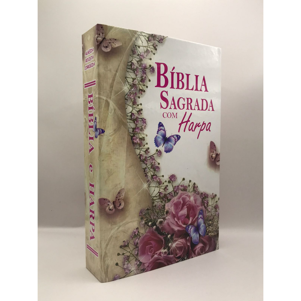 Bíblia Sagrada Tamanho Grande Capa Dura Com Harpa Palavras de Jesus em Vermelho Floral Vaso
