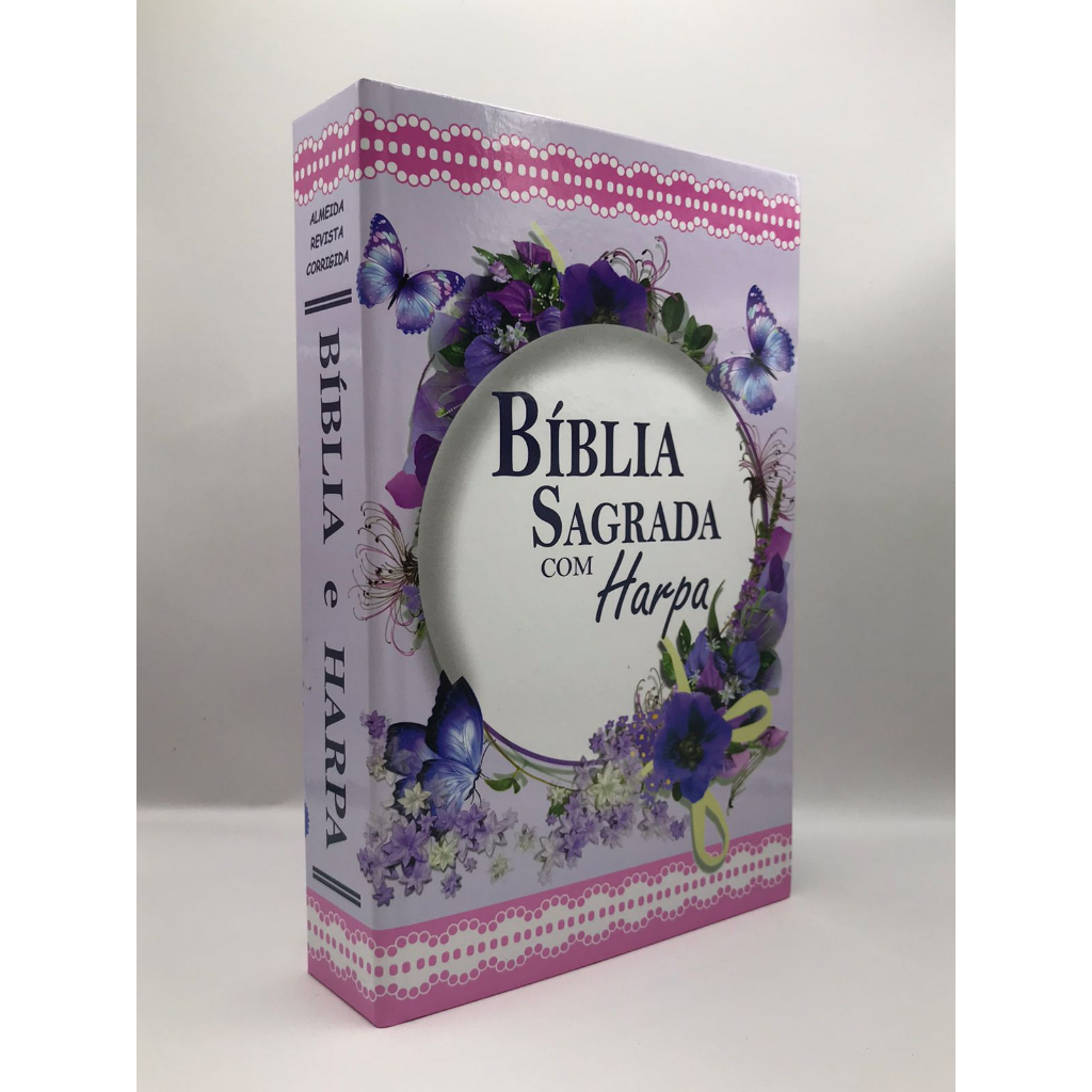 Bíblia Sagrada Tamanho Grande Capa Dura Com Harpa Palavras de Jesus em Vermelho Borboleta Roxa