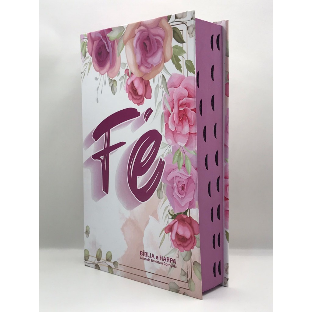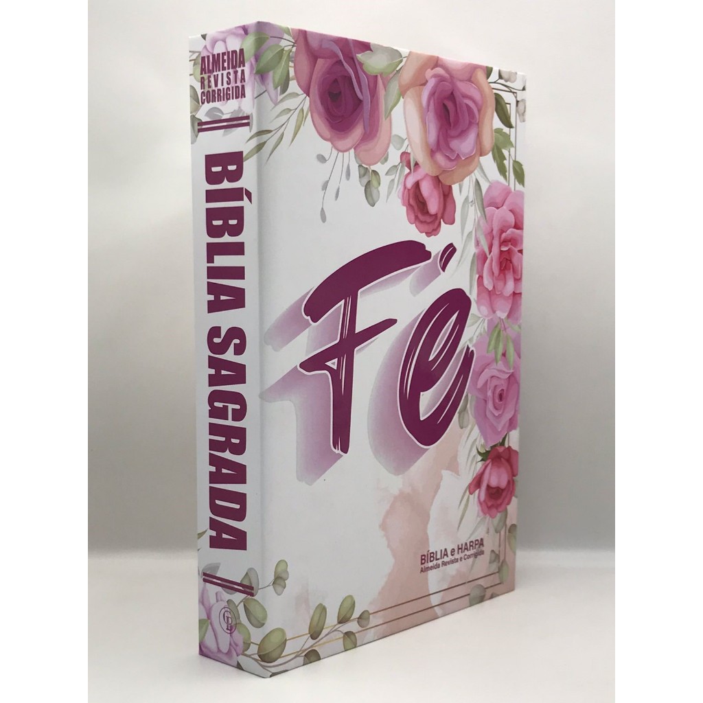Bíblia Sagrada Tamanho Grande Capa Dura Com Harpa Palavras de Jesus em Vermelho Fé Flores Rosa