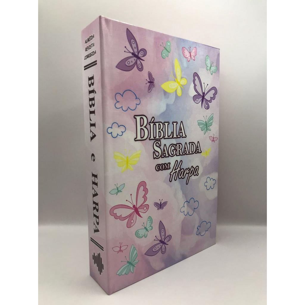Bíblia Sagrada Tamanho Grande com Harpa Palavras de Jesus em Vermelho Capa dura Borboletas