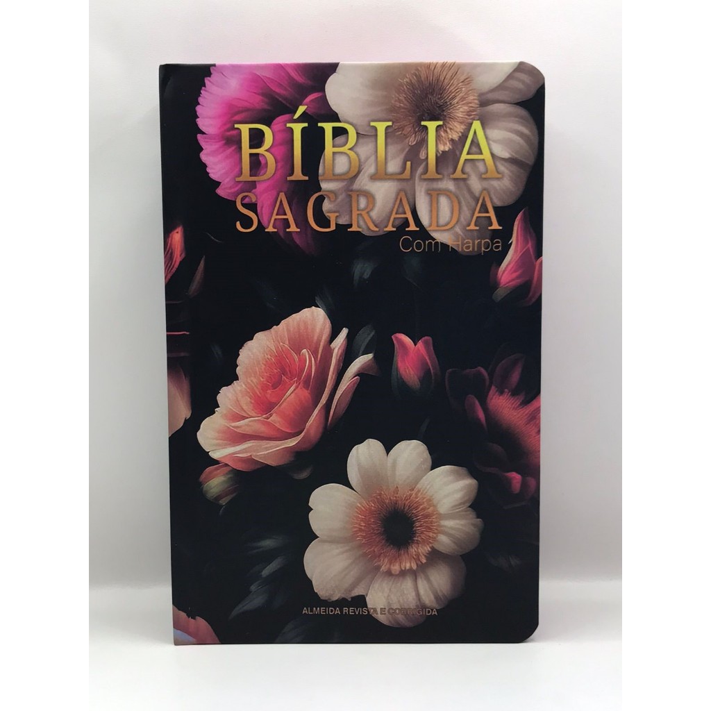 Bíblia Sagrada Tamanho Grande com Harpa Palavras de Jesus em Vermelho Capa Dura Floral Preta