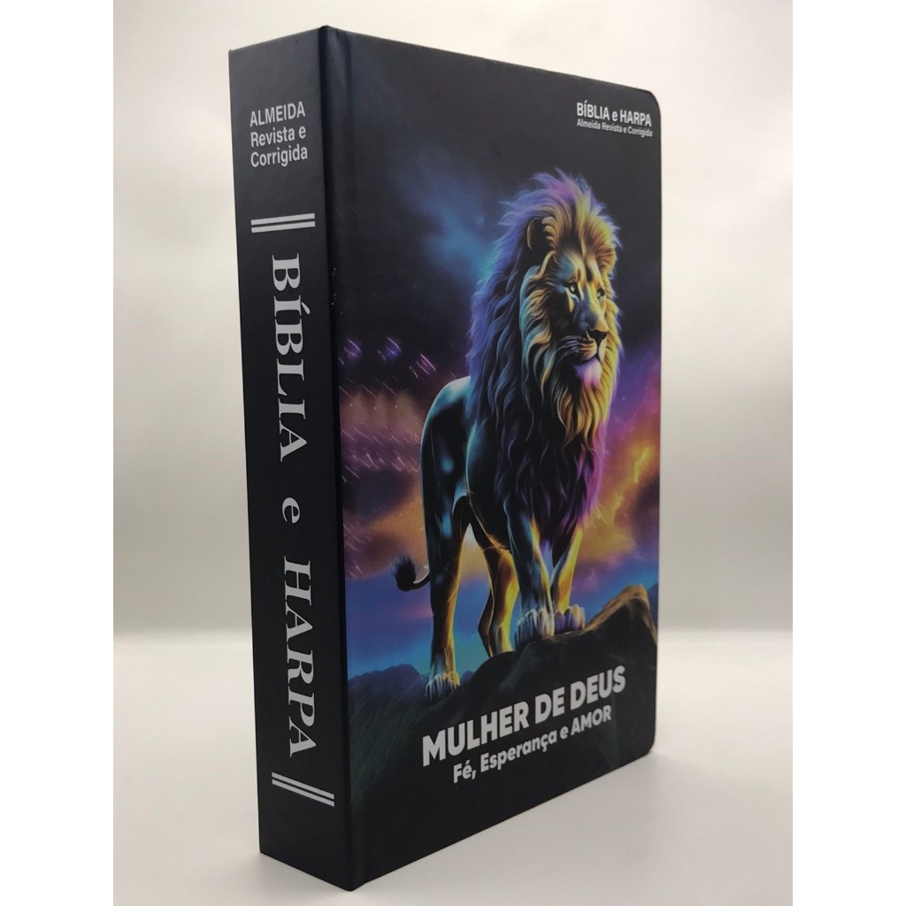 Bíblia Sagrada Tamanho Grande com Harpa Palavras de Jesus em Vermelho Capa Dura Leão Mulher de Deus