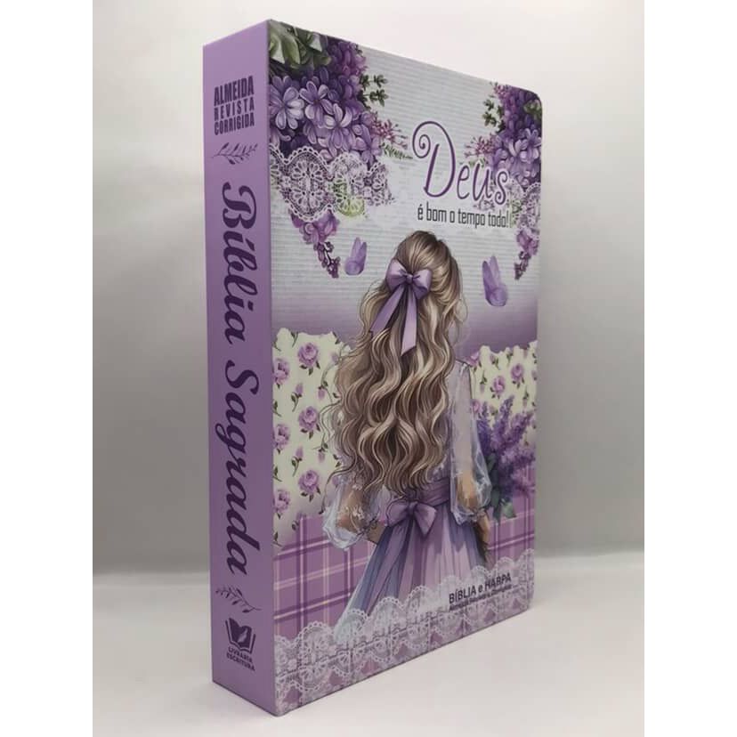 Bíblia Sagrada Tamanho Grande com Harpa Palavras de Jesus em Vermelho Capa Dura Menina Loira