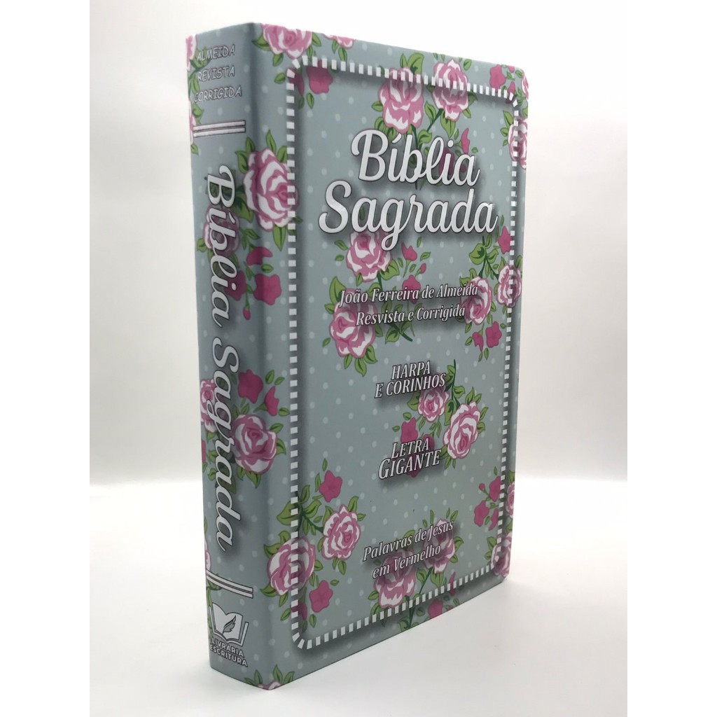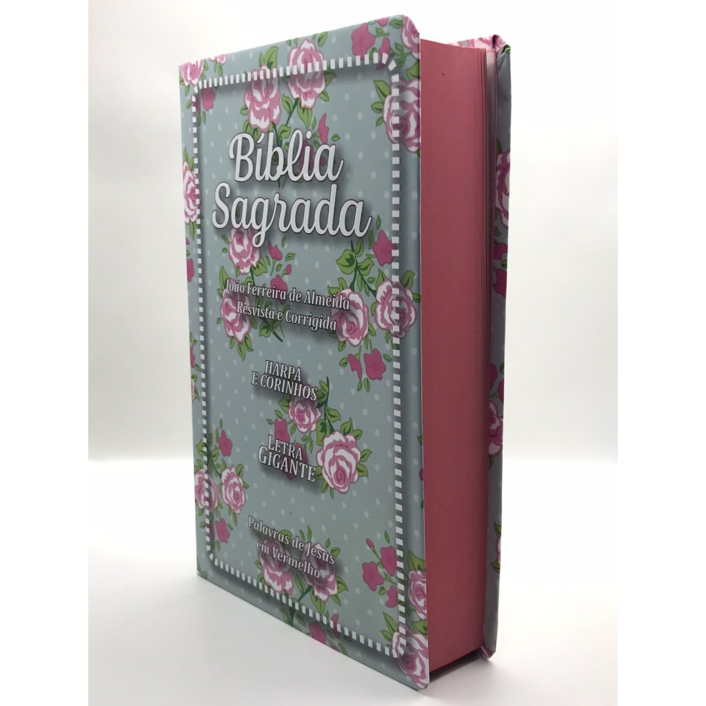 Bíblia Sagrada Tamanho Grande com Harpa Palavras de Jesus em Vermelho Capa Papel Florida Verde