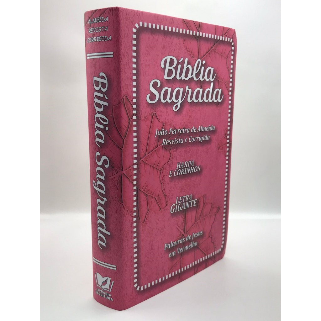 Bíblia Sagrada Tamanho Grande com Harpa Palavras de Jesus em Vermelho Capa Papel Folha Pink