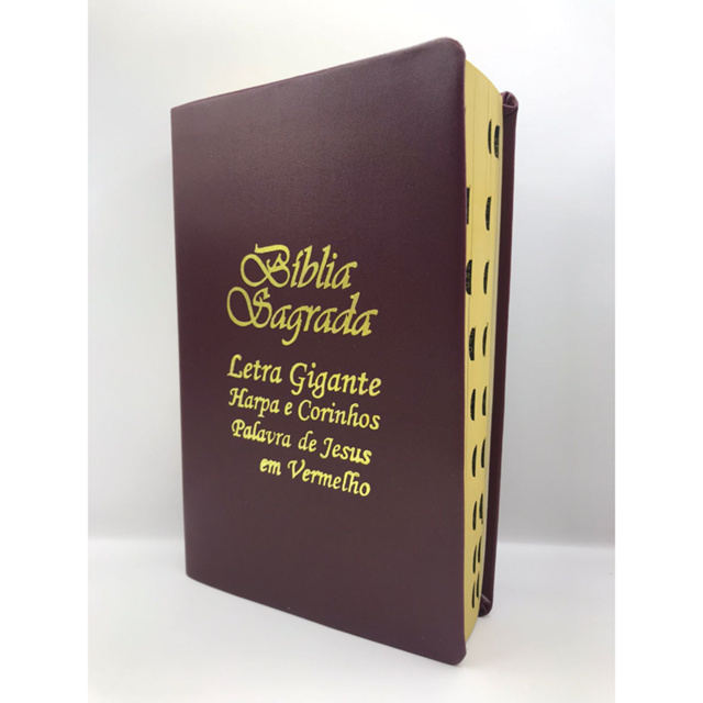 Bíblia Sagrada - LETRAS GIGANTES Fonte Reduzida - Harpa Cristã - Tamanho Grande - Versão Almeida - Luxo - Índice - Edição Promessas - Vinho Você que ama a palavra do Senhor tem hoje a grande oportunidade de adquirir esse modelo especial Luxo, mais barata com Letras Gigantes de Fonte Reduzida, Harpa Cristã, Tamanho Grande e muito mais, ideal para Revenda, dar de presente, fazer ações de evangelismo ou para o seu dia a dia. Essa Bíblia além de ter preço muito acessível possui diversos atrativos, como: * Possui LETRAS GIGANTES; * As Palavras Ditas por Jesus são destacadas em Vermelho * Harpa Cristã; * Versão Tradicional * João Ferreira de Almeida Revista e corrigida; * Capa Luxo * Possui índice na Lateral da Bíblia Tamanho Grande: 21cm Altura x 14cm Largura * e muito mais... As editoras que classificam esta Bíblia como letra gigante. o tamanho das letras São classificadas da seguinte forma em ordem crescente ( letra pequena, letra grande, Letra maior, letra gigante, letra hiper gigante, letra hiper gigante Plus, letra extra gigante e letra jumbo.) As maiores letras são a extra gigante e a Jumbo.