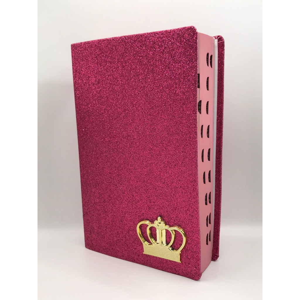 Bíblia Sagrada Tamanho Grande com Harpa Palavras de Jesus em Vermelho Gliter com Coroa