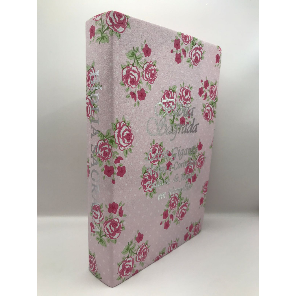 Bíblia Sagrada Tamanho Grande com Harpa Palavras de Jesus em Vermelho Luxo Florida Rosa