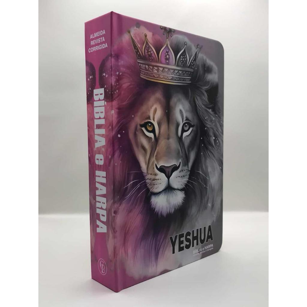 Bíblia Sagrada Tamanho Grande Com Harpa Palavras de Jesus em vermelho Yeshua Rosa e Cinza