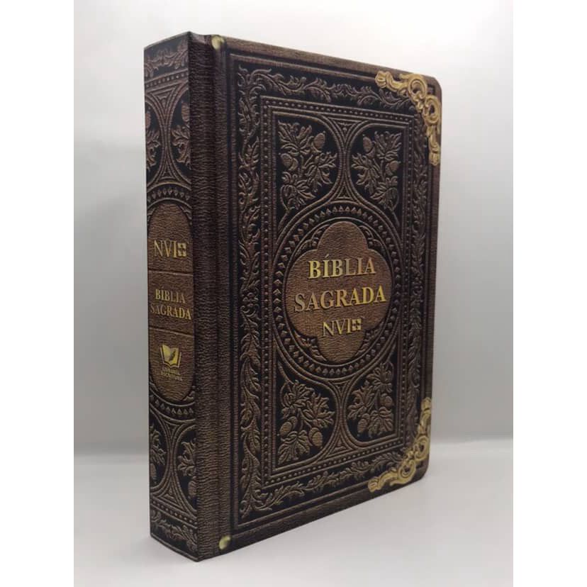 *Medida: 15x22 *Papel Pardo *Letras Gigantes Bíblia Sagrada, com a versão NVI (Nova Versão Internacional). Uma das mais modernas traduções que valoriza a clareza do texto, permanecendo fiel aos Escritos originais. Proporciona ao leitor uma linguagem mais atual e fluente. Incluindo panorama bíblico, mapas e também possuí índice. O projeto de tradução para a língua portuguesa começou em 2000, a partir de uma reunião da comissão da Sociedade Bíblica Internacional. Um grupo formado por respeitados estudiosos brasileiros e de outros países foi reunido para produzi-la. Este projeto durou quase uma década. Muitos acham que é apenas uma tradução da americana, porém erram ao pensar assim, pois a versão em português foi feita no Brasil. O propósito dos idealizadores da NVI foi fazer um texto que se definisse por quatro elementos: precisão, clareza, beleza de estilo e dignidade. Com uma linguagem clara e mais próxima da atualidade, sem perder a beleza do estilo da linguagem bíblica. Cercada de elogios por conta do compromisso que conseguiu manter com os Escritos originais, esta versão da Bíblia já vendeu milhões de exemplares nos últimos anos, e vem se popularizando cada vez mais.