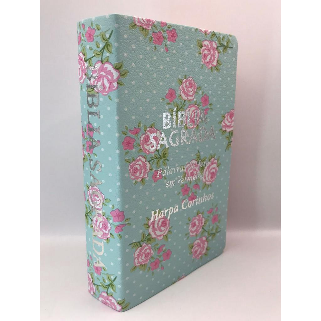 biblia sagrada Tamanho médio 12,5x19 cm Com Harpa palavras de Jesus em vermelho Capa flor verde